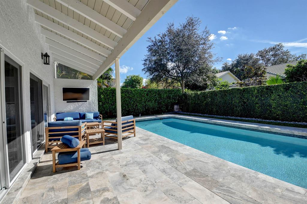 No Showings until after the 1st. This stunning home is nestled in the prestigious Colonnade community. It offers a bright and open floor plan with Southern exposure, rich wood and marble floors, Impact windows and sliders, roof is 3 yrs. old, new whole house generator and transfer switch. The remodeled kitchen offers white cabinets, dark granite with an island of expresso cabinetry and light quartz countertop and SS appliances. The luxurious floor to ceiling fireplace is made of a rare coral stone that's no longer mined. The bathrooms have been recently remodeled to reflect a more modern lifestyle. The massive master suite offers an enormous walk-in closet, vaulted ceiling and beautiful bath. The private backyard offers an inviting pool with a new marble deck.