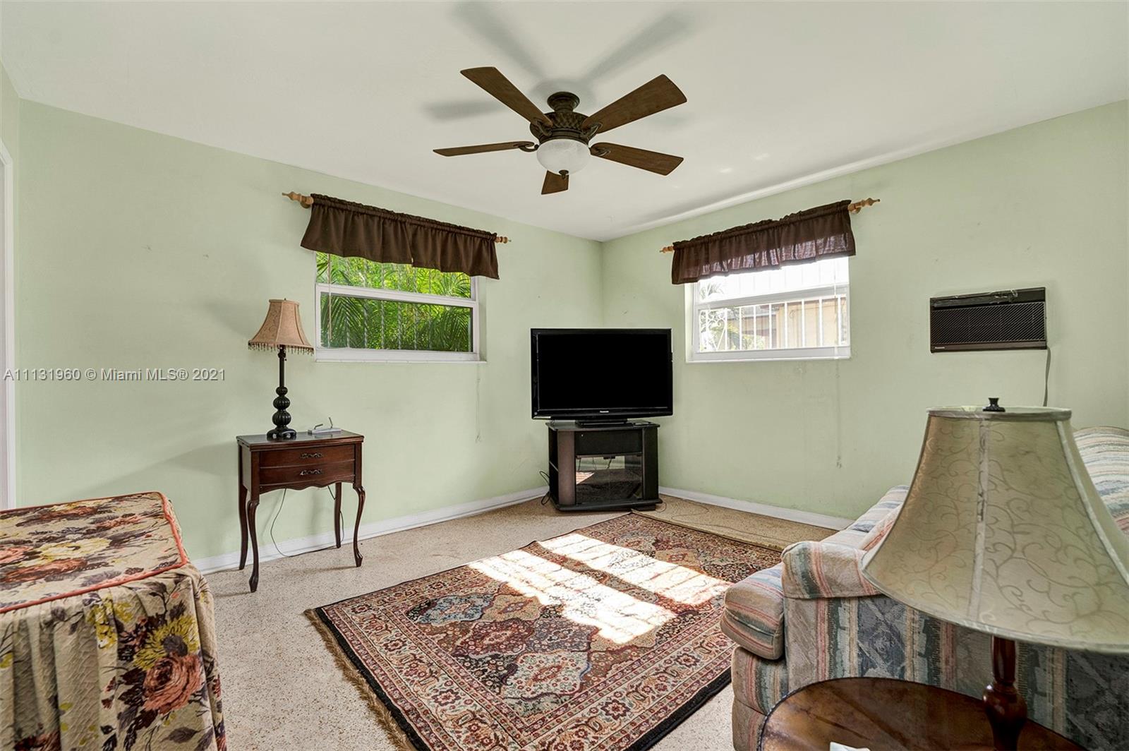 This 3bed/2bath, 1 carport, single family home with room for an additional car in the driveway has two bedrooms and a spacious living area greeted by natural sunlight with it's eastern front facing exposure. 2021 NEW ROOF! Conveniently located to shopping, schools, medical offices and local favorite restaurants. Plenty of room to dream and make this space your own with the oversized bedrooms and living space with nicely kept Terrazo flooring throughout the home. Take care of your DIY Projects in the dedicated Storage/Workspace in the backyard. Wind down in the evenings watching the sunsets from your back porch with western exposure surrounded by lush landscaping and tropical fruit trees including avocadoes, mangos and oranges. Hurricane inpact windows. Furniture and car do not convey.