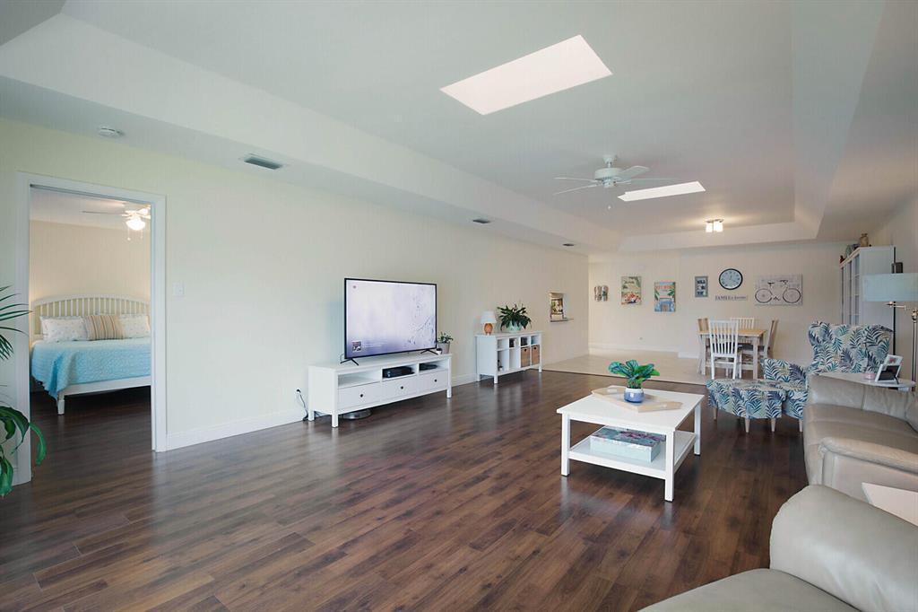 Immaculate & updated on sparkling lake lot w/impact sliders & windows . Enter this light, bright and cheerful home to find tile & laminate floors throughout, a remodeled eat-in kitchen w/granite counters, pencil tile backsplash, stainless steel appliances, light cabinets w/pull-outs, a pantry + sliders out to a spacious, tiled screened porch. Expanded living room looks out onto the open patio and lake. Tray ceilings (no popcorn). Primary bedroom has laminate floors, walk-in closet and remodeled bathroom w/2 wood vanities & beautifully tiled shower. Split bedroom plan. 2nd bathroom also remodeled. ''Plantation shutter style'' closet doors are a nice upgrade. LOW HOA fee ($160/mo). SEE SUPPLEMENT FOR IMPORTANT ADDITIONAL INFORMATION.