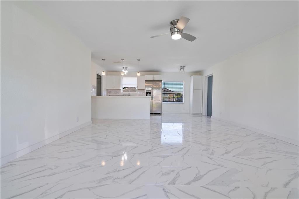 Completely remodeled 3/2 home with oversized 2 car garage. Home features new kitchen with white shaker cabinets, quartz counter tops and stainless steel appliances. New waterproof laminate flooring in all bedrooms. All living areas have marble look tile. Bathrooms have also been remodeled with designer tile and fixtures. New 3.5 ton AC and water heater. New ceiling fans and light fixtures. Newer electrical panel and storm shutters for all windows. Washer and dryer hook up in laundry room. Easy show.
