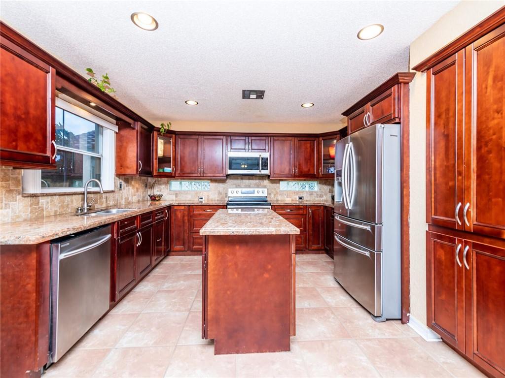 This stunning 4-bedroom, 2.5-bath, two-story home is impeccably kept on a quiet street in a gated community with an outstanding school district. The community features tree-lined streets and a gated entry for security. Main floor has soaring vaulted ceilings with a wonderful open floor plan, remodeled wood and granite kitchen, stainless steel appliances, and an island. It's the original roof that has never had a leak. Master bedroom has a separate shower with roman tub and a large walk-in closet. 2nd story has all wood floors. Home is equipped with hurricane panels and a 2 car garage.
