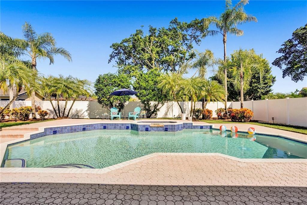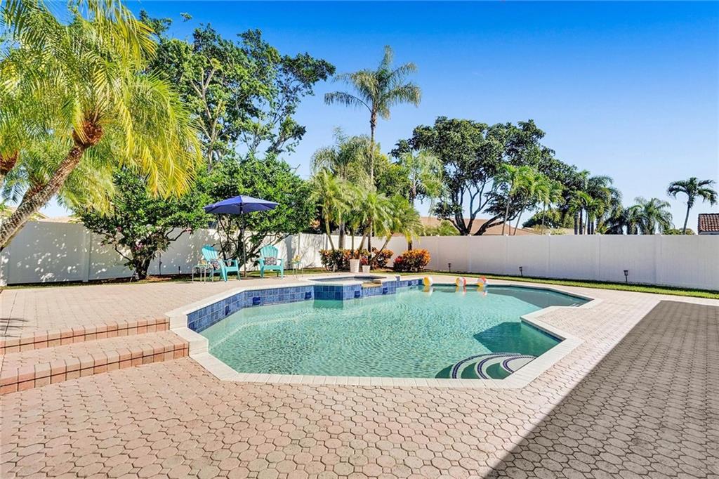 Beautiful King Arthur model 4/3.5 absolute must see! Immaculate and move-in ready! This house has so much to offer;Gorgeous impact door was just installed 2021;Split ACs; Beautiful kitchen offers wood cabinetry, granite counters & stainless appliances;Newly renovated bathrooms are a dream come true;His & Hers walk in closets;His and Hers full bathrooms;Spacious master w/ room for office;HUGE 11,253sq.ft. lot;LOW HOA$340/YR;2006 S-tile roof (no flat roof);Salt Water Pool & spa;10’x30’ covered screened patio w/ pavers throughout patio;Beautiful tile flooring in living area & higher profile baseboards;paver driveway;hurricane panels;impact garage door;sprinkler system;2020 beautiful white fence;Under-air laundry room w/ laundry tub;Great schools; close to hospitals,places of worship, =parks