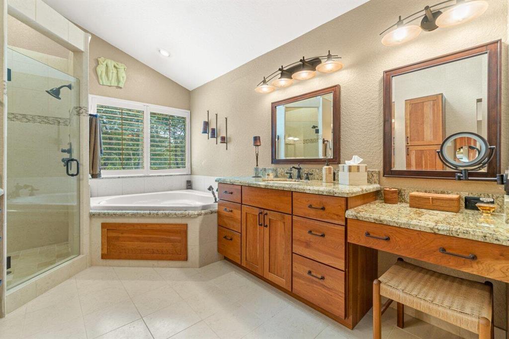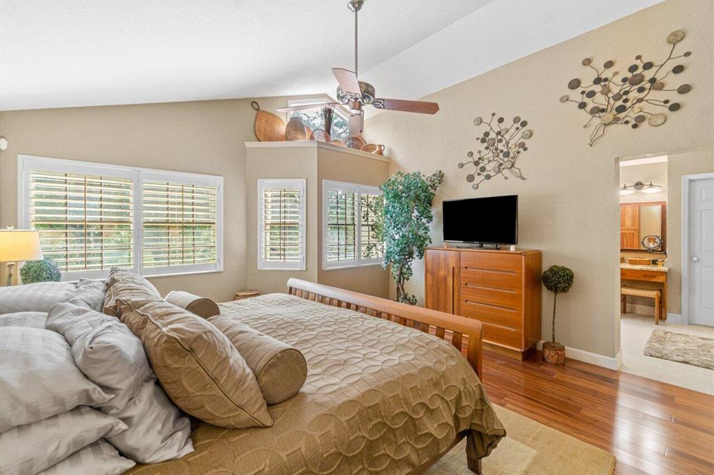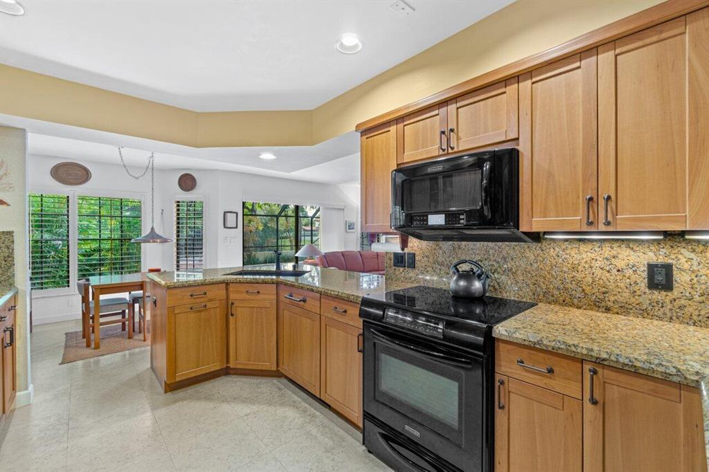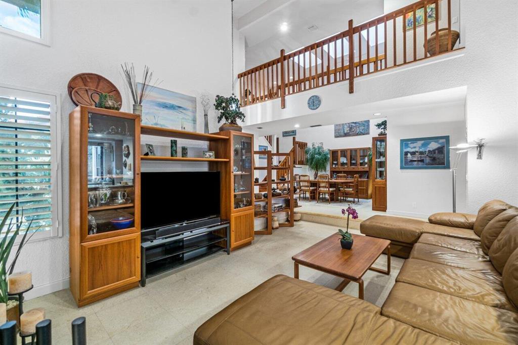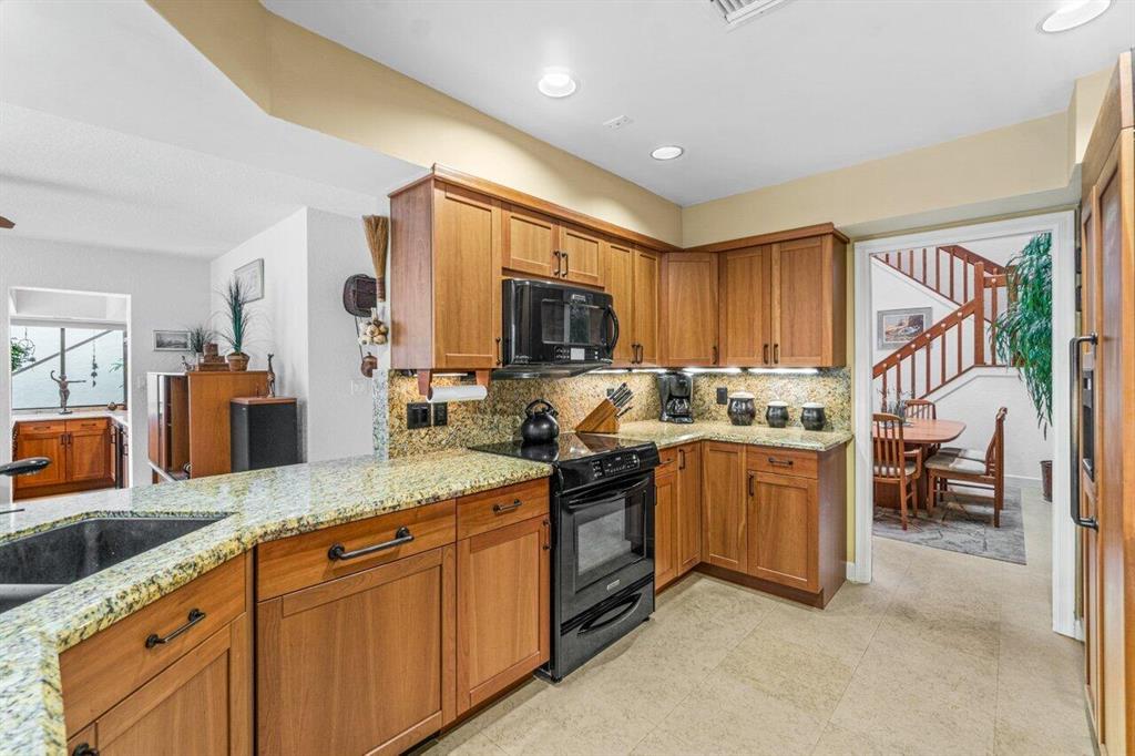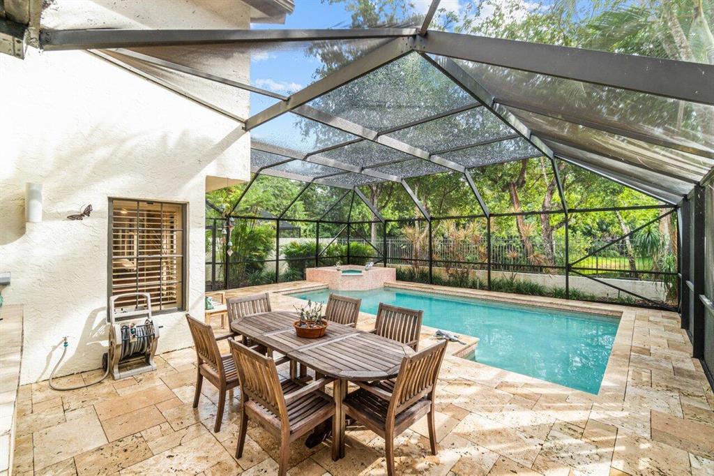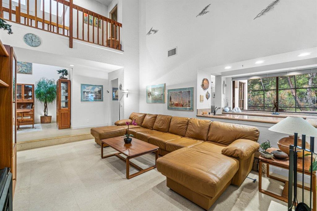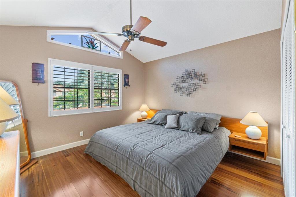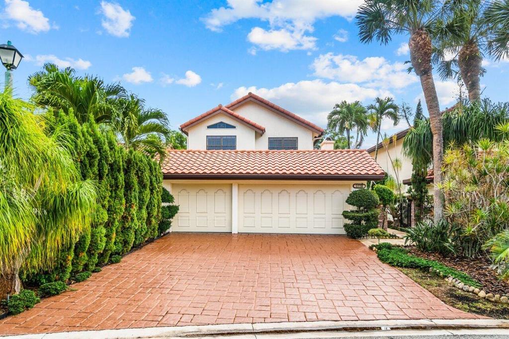 Beautifully updated two story lakefront Dominica model. This 4/3 smartly designed open floorplan boasts soaring ceilings, clerestory windows, smooth Jerusalem stone and Brazilian tiger wood flooring. Formal living room with floor to ceiling fireplace. Beautiful custom kitchen with paneled KitchenAid refrigerator & appliances, pantry w/pullouts, granite tops & backsplash. Step down wine bar opens to living room & patio. Sunny breakfast room & family room overlooking pool/patio. Second floor primary suite offers vaulted ceilings, beautiful bath w/spa tub, separate shower & dual vanities. Peaceful private lakefront setting offers travertine patio, sparkling pool & heated waterfall spa. Perfect for entertaining. Professionally landscaped courtyard with a collection of tropical plants.