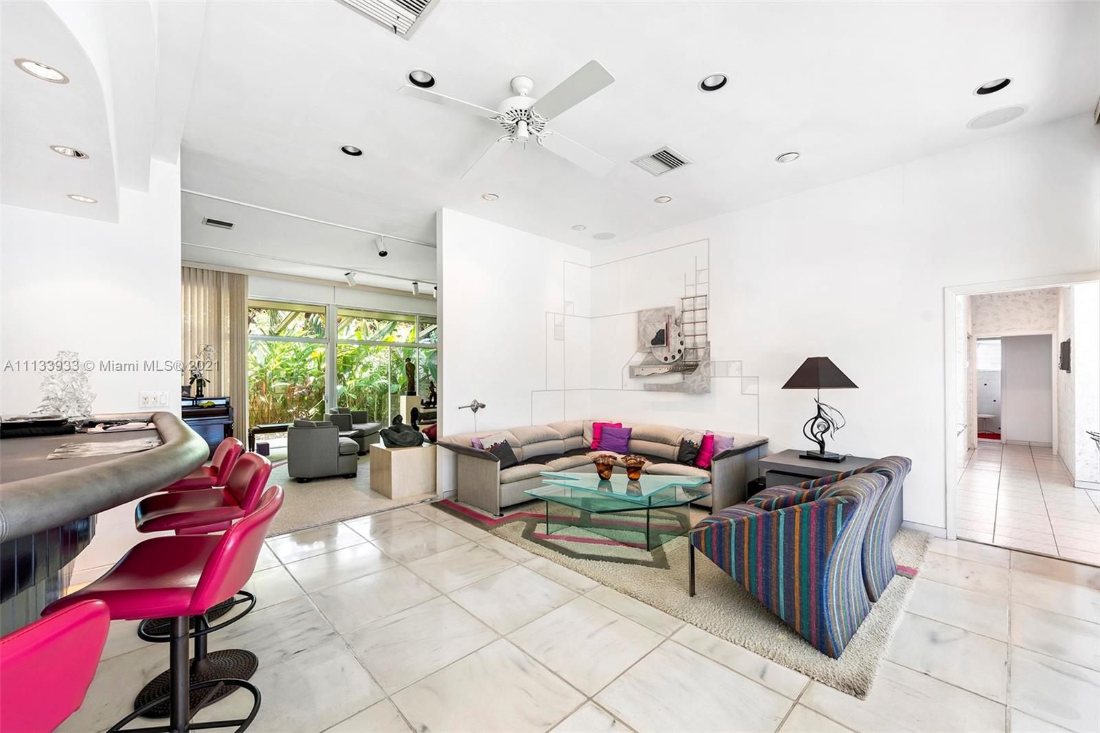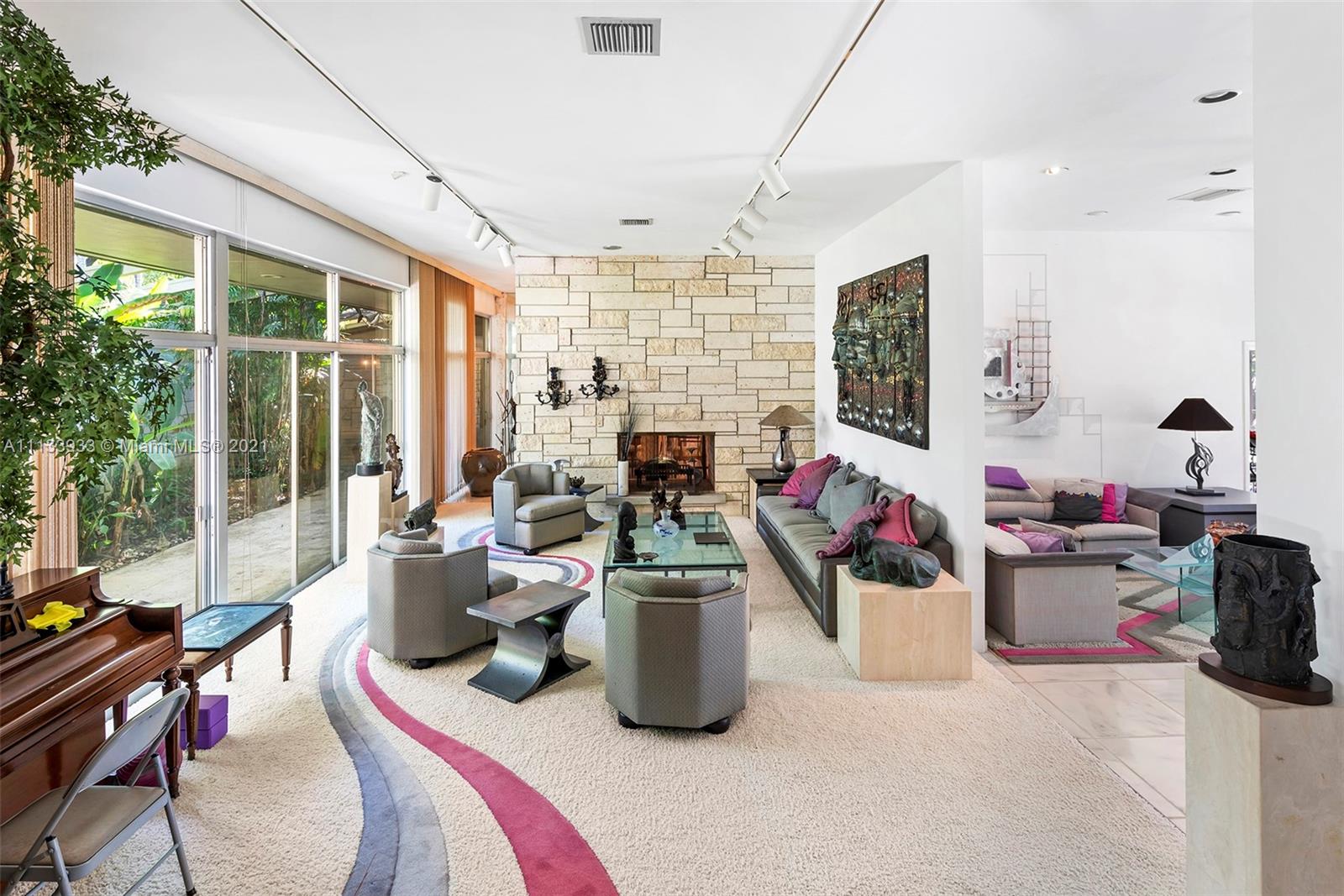 Restore, renovate or reimagine absolutely amazing Mid-Century Modern home, or build your own dream sanctuary on the gorgeous Hammock Lakes waterfront acre+. Its fabulous lakeside location is PRIME:Enjoy the priceless benefits afforded by a prestigious, close-in gated community, a plum Schoolhouse Rd address adjacent to W Matheson Hammock Park (a vast green open space), prevailing easterly breezes & spectacular western sunsets. Drink in the serene vista poolside or from the poured concrete dock. The visionary 1961 residence was built for the ages; its great bones, clean lines, high ceilings posess a timeless esthetic. The front exterior wall, striking interior central fireplace and other architectural details are masterfully crafted from locally quarried oolitic limestone.