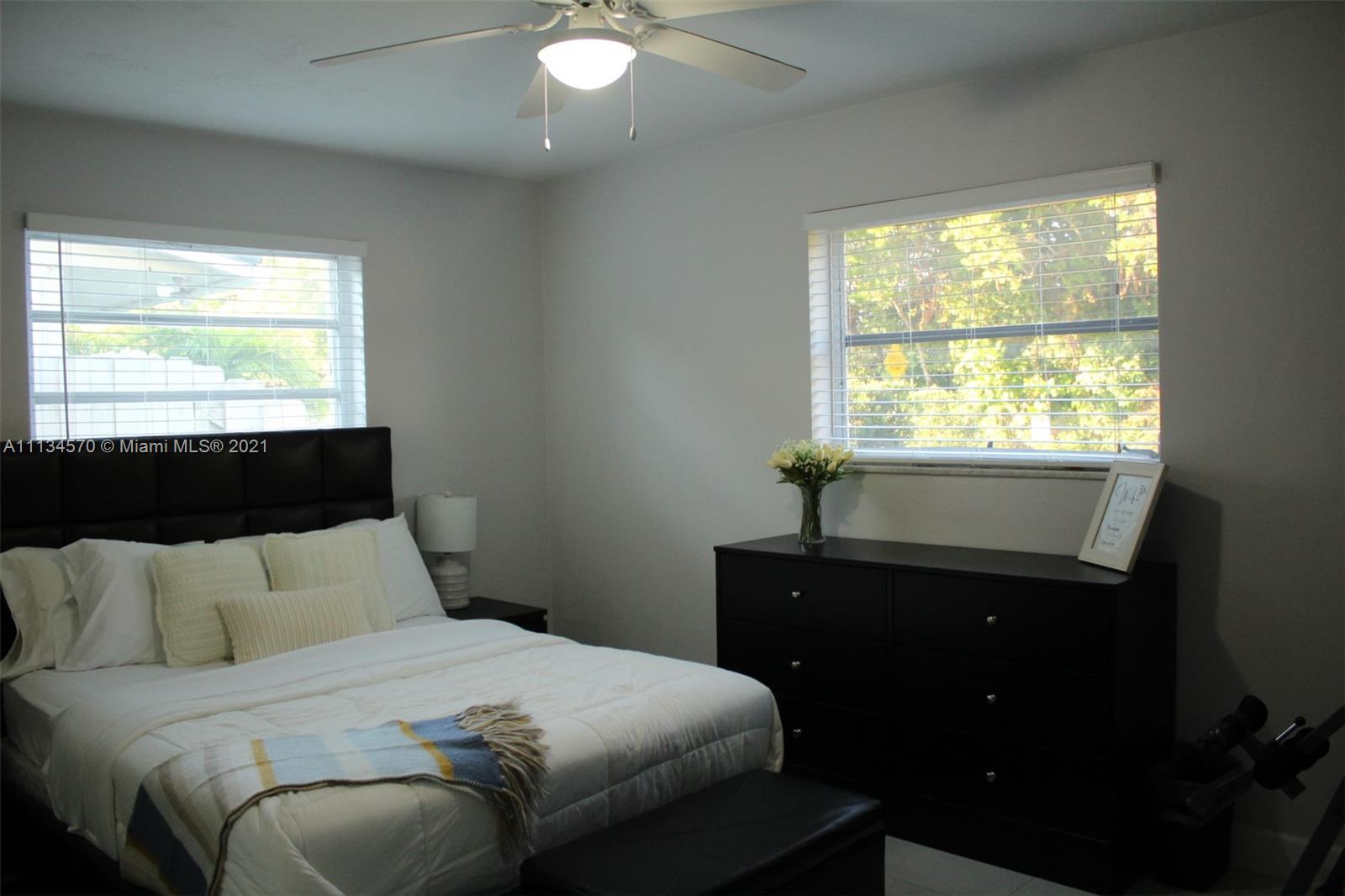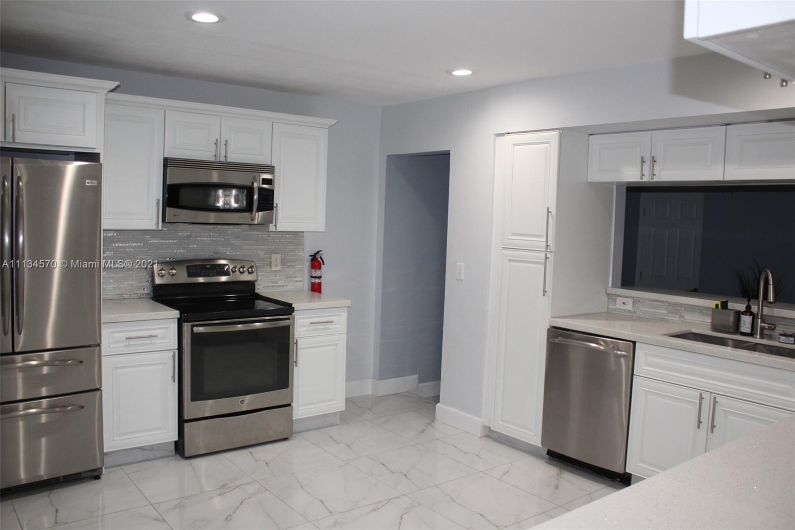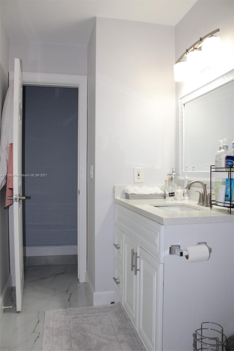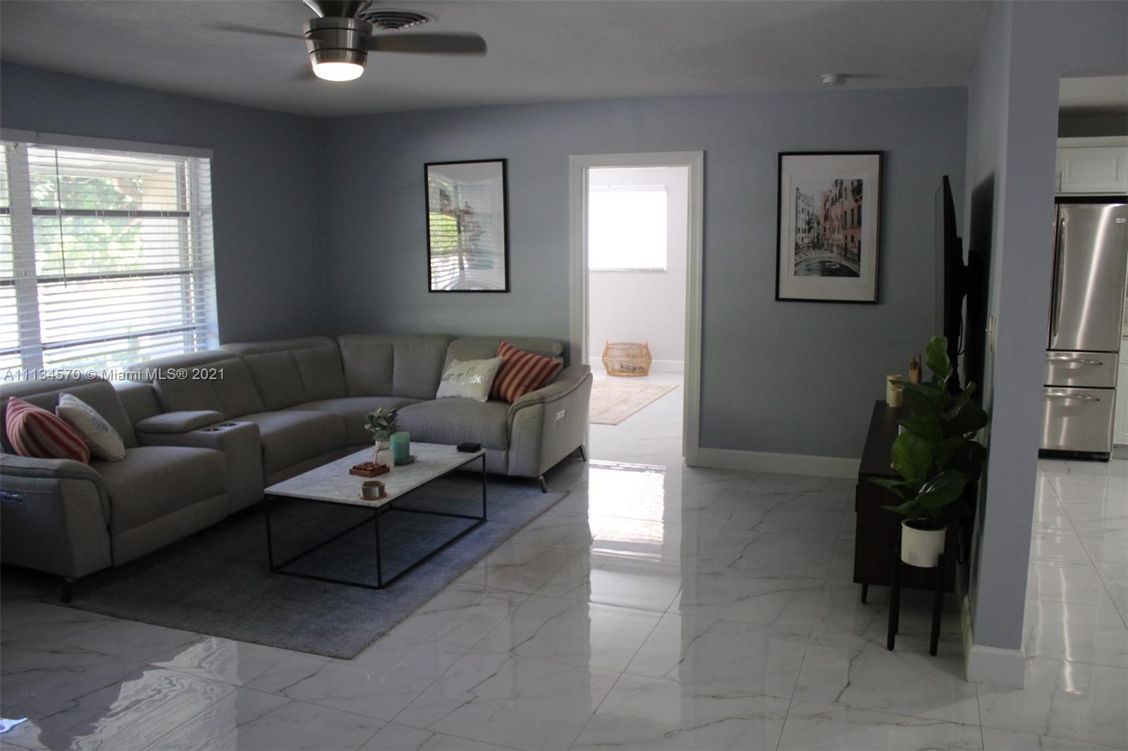Your dream home awaits in the beautiful Hollywood Lakes neighborhood, walking distance from Downtown Hollywood's vibrant Young Circle and Hollywood Beach Boardwalk. This 2,155 sqft 4 bed 2 bath home has been renovated and updated. It features a split layout with large porcelain floors, oversized updated quartz countertops throughout with gorgeous white cabinets providing plenty of storage for the cook in you. The large master bedroom has 2 closets and a huge modern master bathroom that is sure to please. The other 3 bedrooms are stacked yet split from the master and Florida room that is open to the kitchen and dining. Wait until you see the large laundry room with extra storage, it will blow you away. Enjoy the screened-in patio that is nicely placed inside of a completely fenced yard.