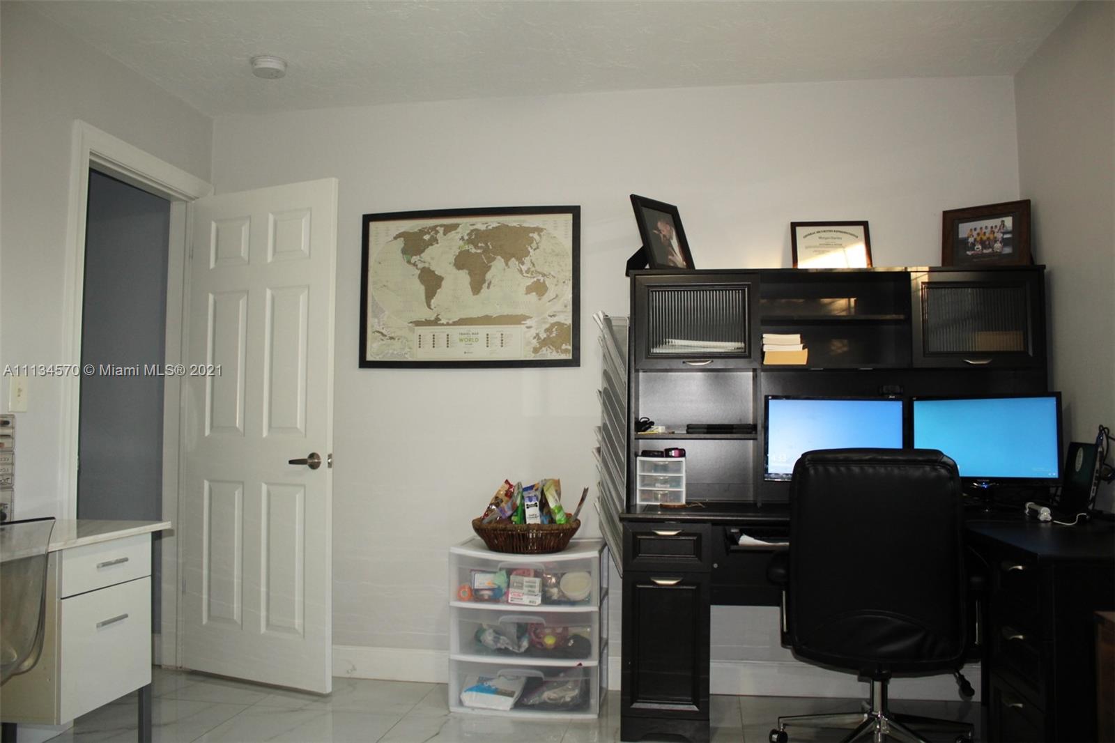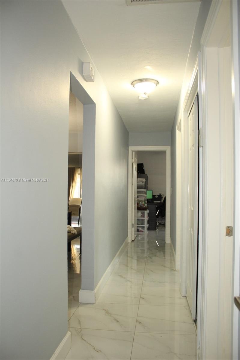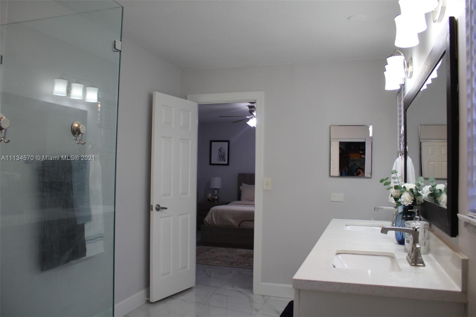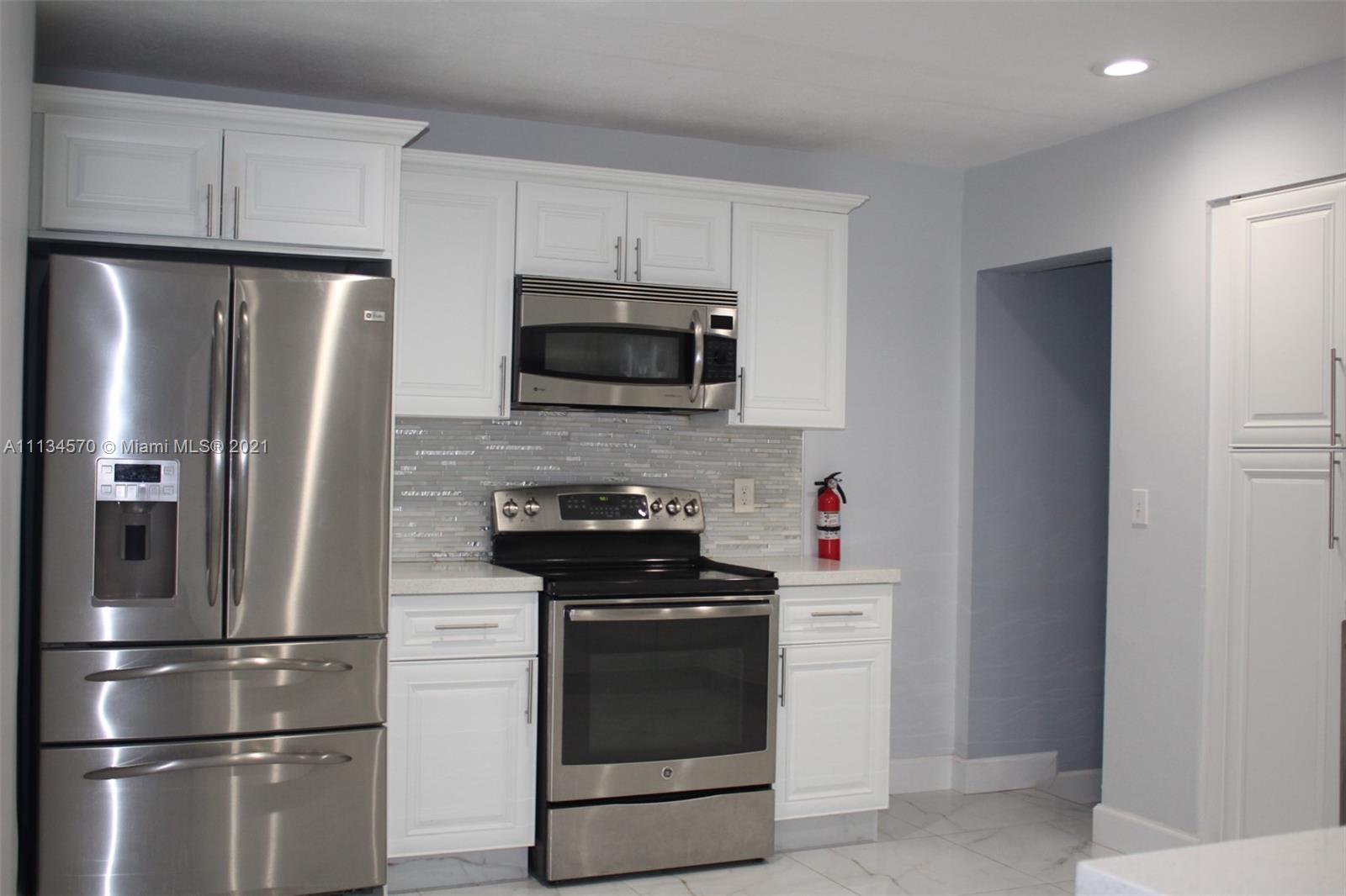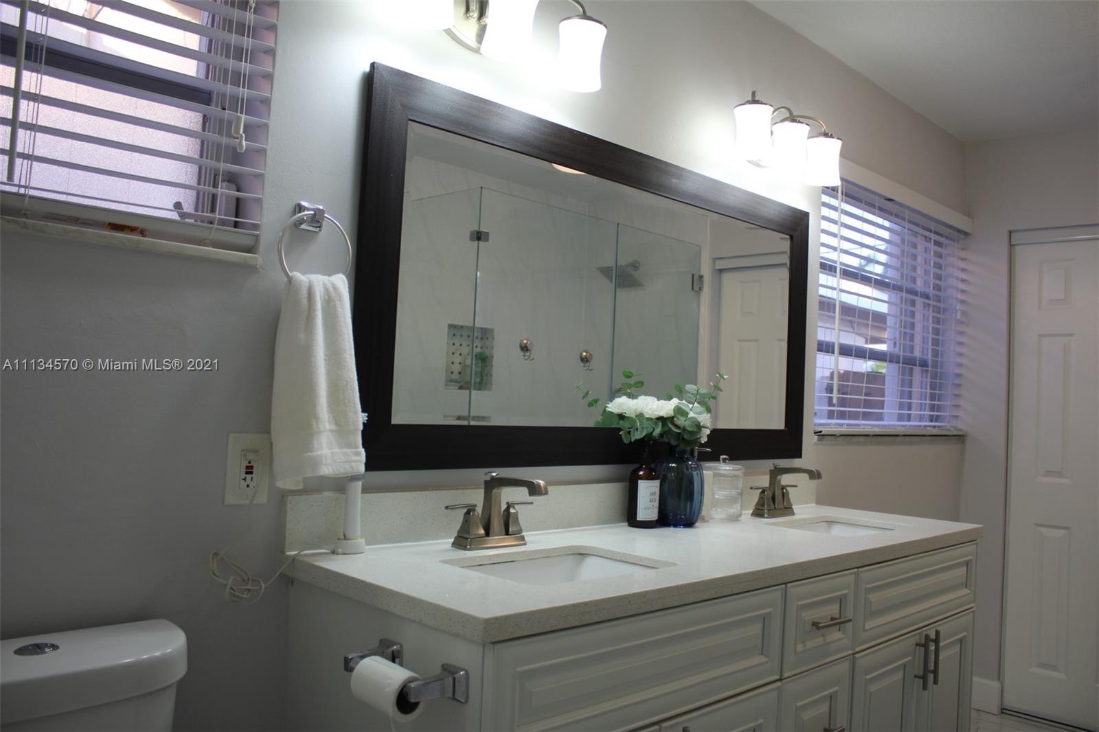 Your dream home awaits in the beautiful Hollywood Lakes neighborhood, walking distance from Downtown Hollywood's vibrant Young Circle and Hollywood Beach Boardwalk. This 2,155 sqft 4 bed 2 bath home has been renovated and updated. It features a split layout with large porcelain floors, oversized updated quartz countertops throughout with gorgeous white cabinets providing plenty of storage for the cook in you. The large master bedroom has 2 closets and a huge modern master bathroom that is sure to please. The other 3 bedrooms are stacked yet split from the master and Florida room that is open to the kitchen and dining. Wait until you see the large laundry room with extra storage, it will blow you away. Enjoy the screened-in patio that is nicely placed inside of a completely fenced yard.