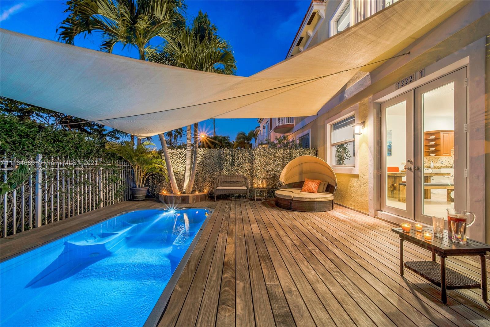 Enjoy carefree luxe living in this spacious updated two-story Lake Ridge corner townhome. Totally turnkey with volume ceilings, new designer stone veneer wall, bright open flow living, dining and eat-in kitchen with double French doors to the private fenced entertainment patio with plunge pool and beautiful Ipe wood deck—great to entertain or relax! Unwind in the large main suite retreat with vaulted ceilings, spa-like bath with soaking tub, large textured porcelain-walled shower, pebble stone floor, double vanity, and walk-in closet. Bonuses: spacious guest rooms, updated baths, large two car garage, impact windows-doors, newer washer-dryer, and updated appliances. All in a boutique community in a fantastic Lake Ridge location close to the beach, Galleria, Sunrise shops and restaurants.