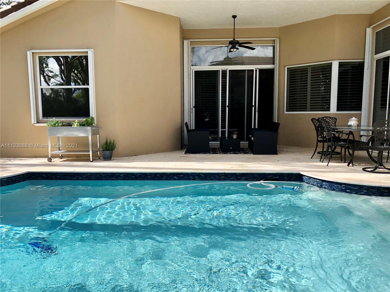 You’ll love this stunning 1 story house located in one of Weston's most desirable gated neighborhoods Come see this pleasant home truly made for both entertaining and everyday living, with plenty of space including offices. A beautiful floor plan, high ceilings, all new LED recessed high hats, chef’s kitchen with stainless steel appliances, quartz countertops, double ovens, plenty of cabinets with all interior drawer roll out and a roomy pantry. The heart of this home, the kitchen, with adjoining dining and family rooms, make it ideal for gatherings. Walk outside to a backyard oasis with a new travertine pool area deck and enjoy the life. And yes! New roof, AC under warranty, impact windows and shutters. This property is immaculate, well-cared for, and ready for new owners. Welcome home!