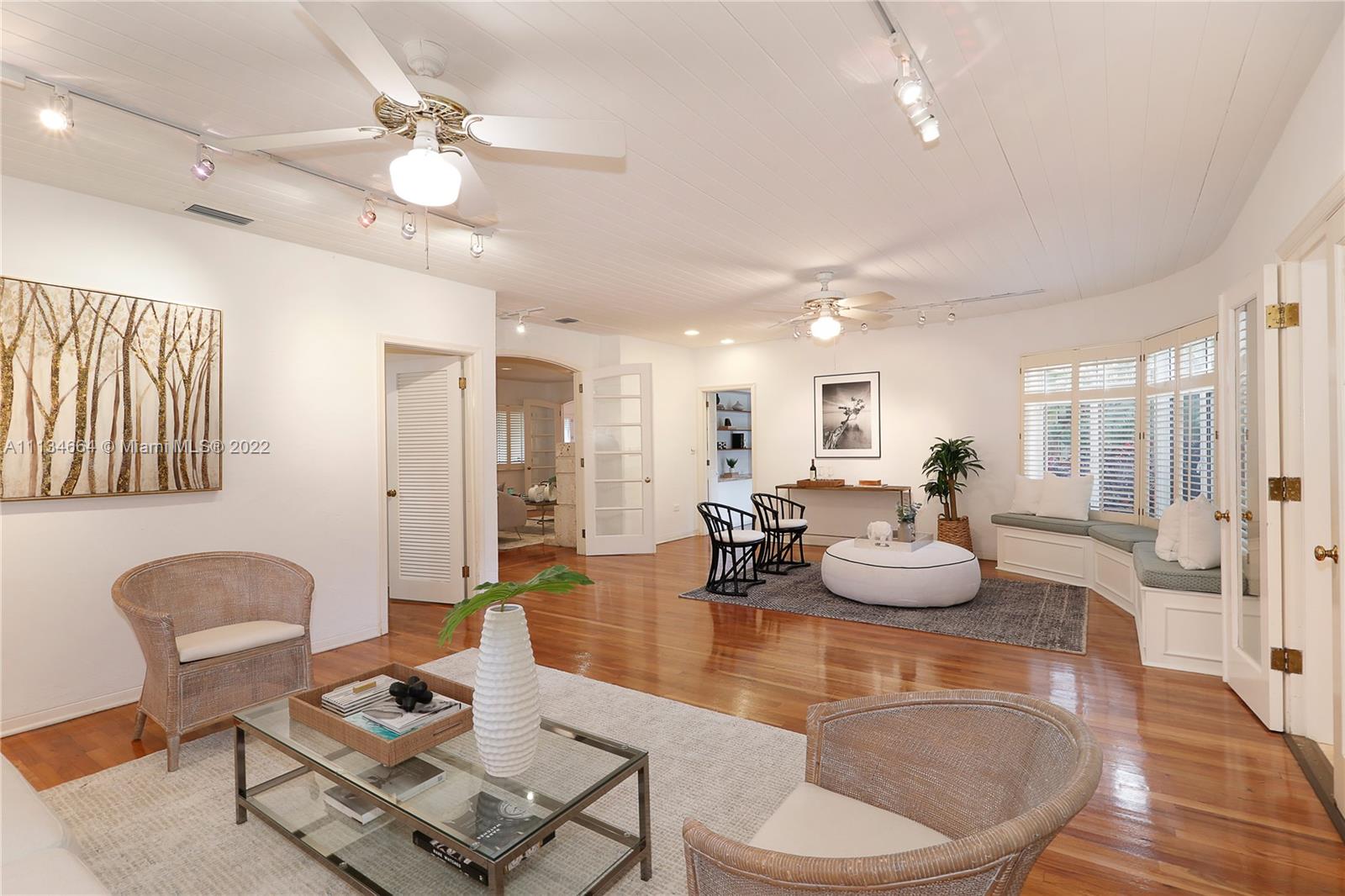 Wonderful opportunity in the best Coral Gables location, directly across from the Biltmore hotel, golf course, & tennis cts! This 5 BR, 5 BA home maintains its vintage charm w/ details like Art Deco-style keystone mantle, gorgeous hardwood floors, & plantation shutters, but has had 2 major expansions to include a large primary suite, great rm w/ double-height ceilings, private 2nd floor office, & wine closet. The home also features formal living & dining rms, eat-in kitchen, family rm, & split floor plan w/ 3 BRs to one side, & 2 others that are situated privately. Beautiful pool area w/ open patio & pergola, & generous front & side yard that is fully gated. 2 car gar, laundry room, solar water heater, & much more. This home, w/ beautiful Biltmore views, is ready to be made new again!