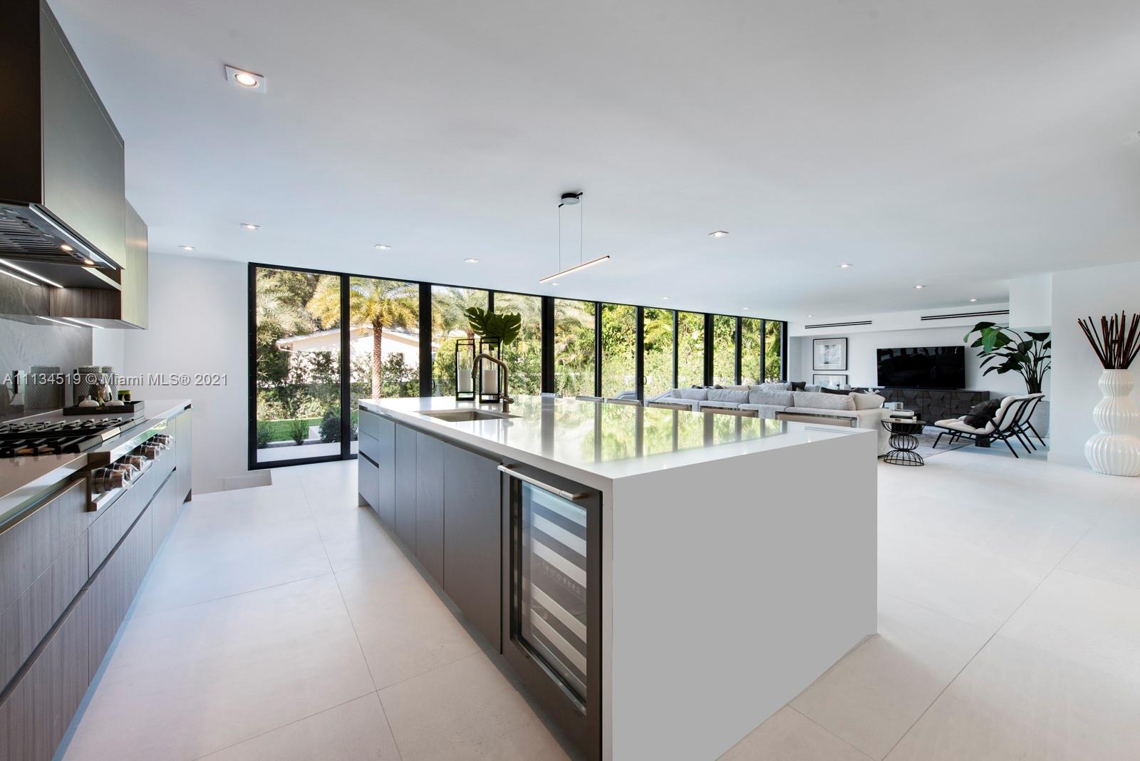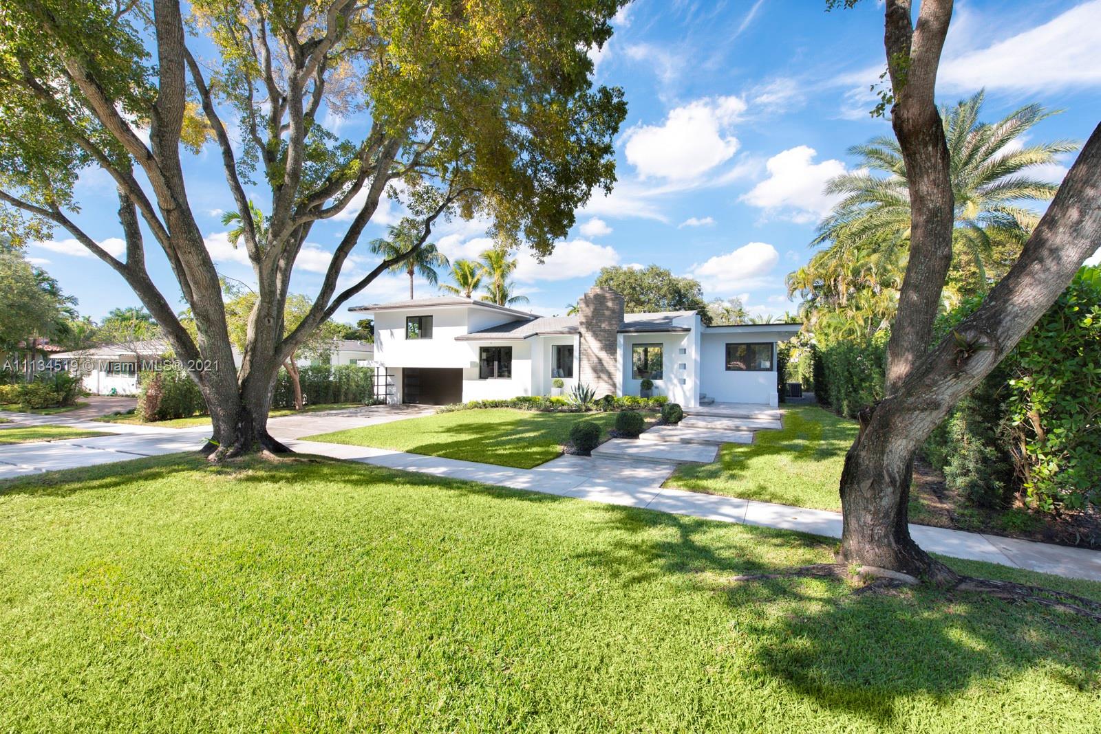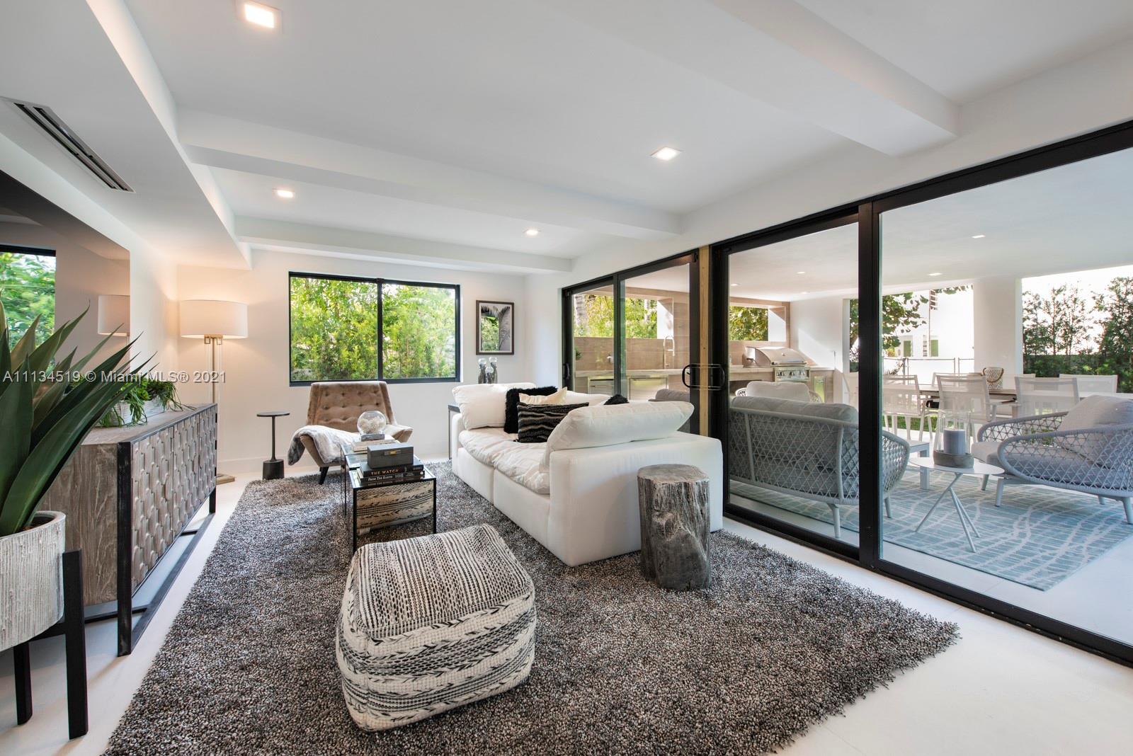 This mid-century modern home is located in the heart of the desirable Village of Miami Shores, situated in front of Constitution Park. The 2021 renovation is complete with cascading terraces, a spacious entry accented with a wood burning fireplace and open floor plan with porcelain floors and sliding doors opening to an equally expansive veranda. The open gourmet kitchen with quartz countertops and full suite of Dacor professional grade appliances. A lower level living space with a full bath could be used for a playroom, office or gym. The downstairs living area offers a wall of sliding doors leading to a covered outdoor kitchen and dining area, fully built out with an ice maker, beverage center, sink and 36” gas grill. Close to shopping, restaurants, and world class beaches!