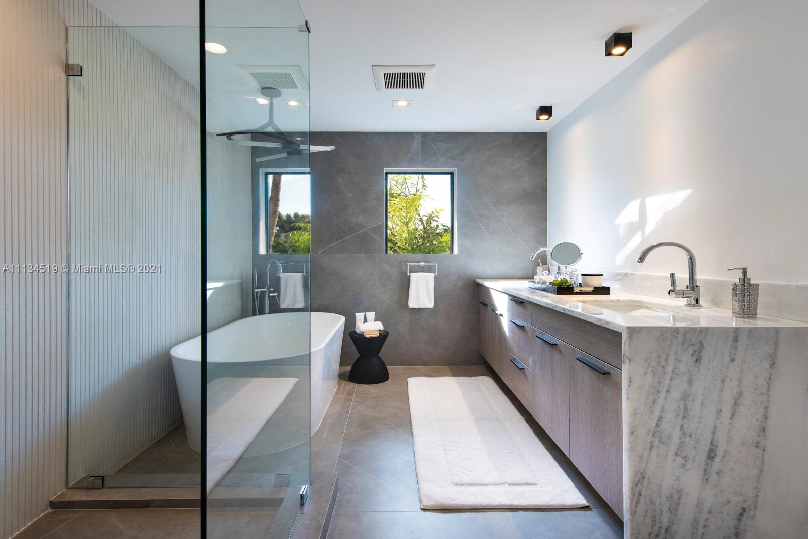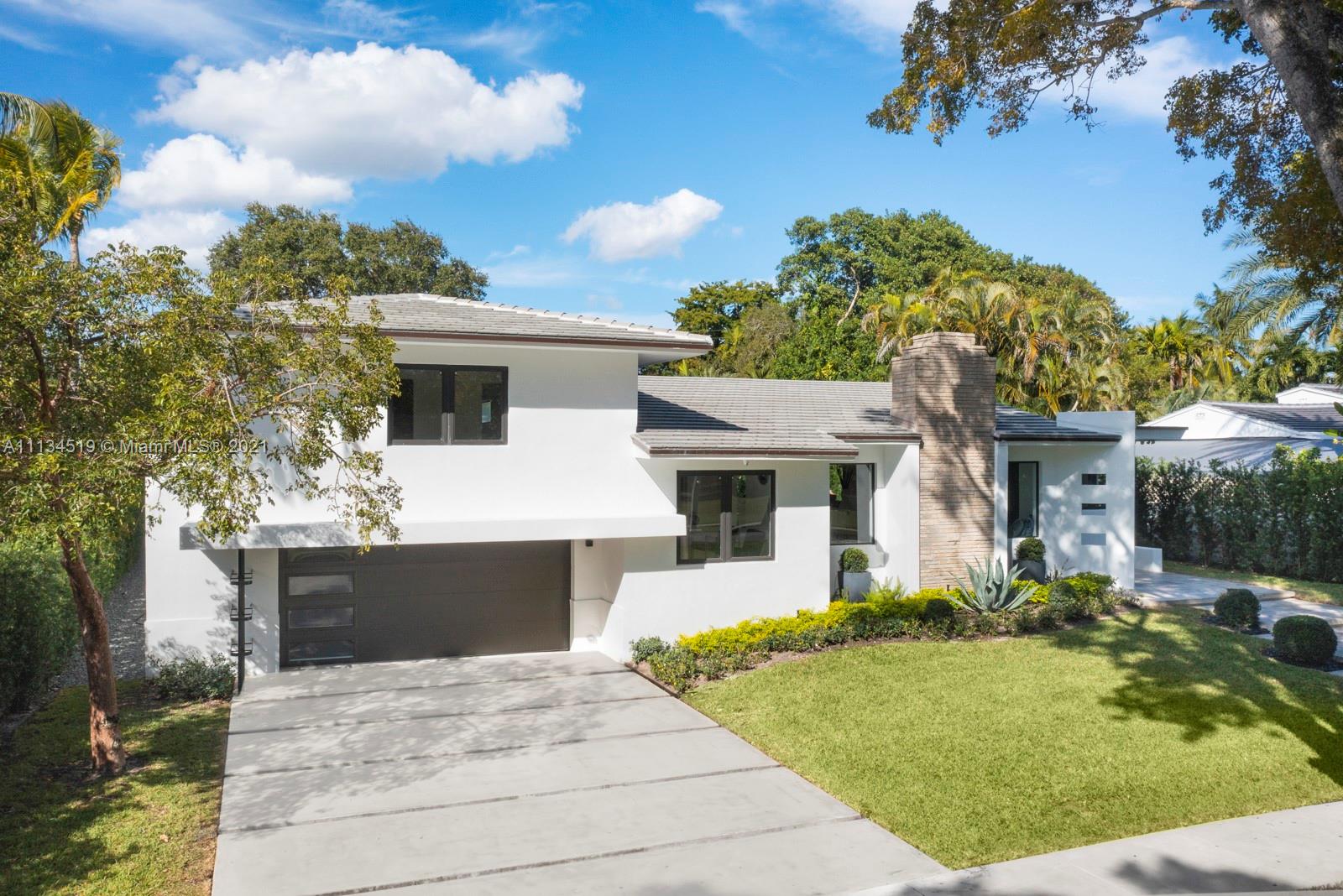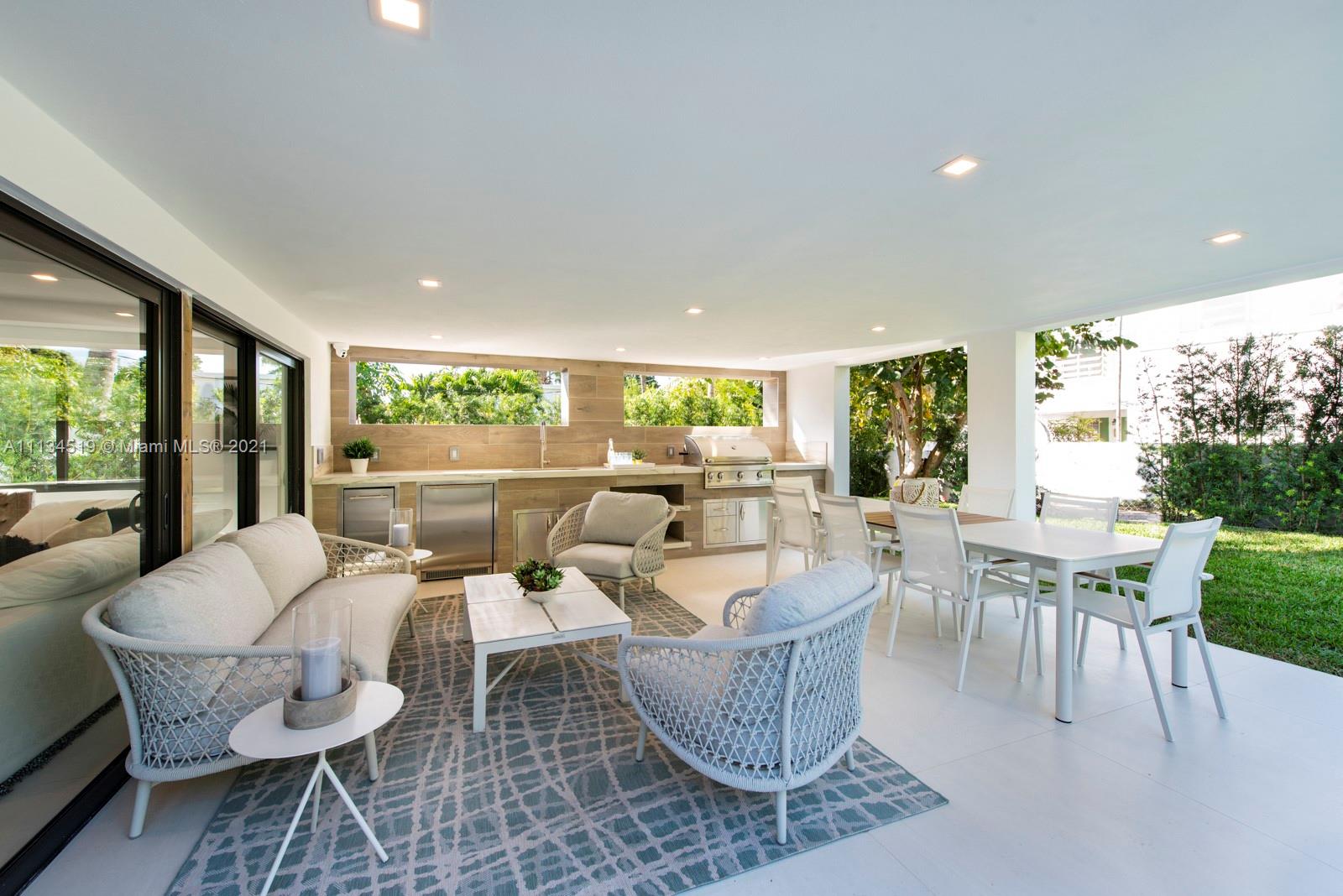 This mid-century modern home is located in the heart of the desirable Village of Miami Shores, situated in front of Constitution Park. The 2021 renovation is complete with cascading terraces, a spacious entry accented with a wood burning fireplace and open floor plan with porcelain floors and sliding doors opening to an equally expansive veranda. The open gourmet kitchen with quartz countertops and full suite of Dacor professional grade appliances. A lower level living space with a full bath could be used for a playroom, office or gym. The downstairs living area offers a wall of sliding doors leading to a covered outdoor kitchen and dining area, fully built out with an ice maker, beverage center, sink and 36” gas grill. Close to shopping, restaurants, and world class beaches!