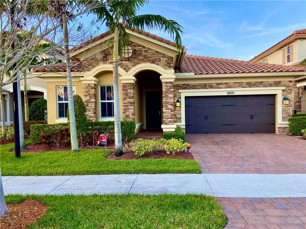 Come & fall in love with this bright & sunny home in Miralago. Home is move-in ready & beautiful. 4 Bedrooms and 3 Full bathrooms, split floor plan. The entry foyer leads you to a Spacious Living room & Formal DR. Large EIK w/Granite Counters and Island, SS Appliances, and Dbl Oven and Family room lead you to the breathtaking views of the lake. Primary bedroom features an on-suite with Jet Tub & Frameless Shower, Vanity w/ dual sinks. Impact Windows & Doors, Updated Lighting, New Carpet, Newly Painted. Enjoy Living In This Prestigious Guard Gated Community w/Resort Style Amenities. Clubhouse has indoor & outdoor basketball courts, 2 fitness centers, 2 playground, 2 resort style pools, splash pad for kids, hot tubs, saunas, tennis courts, and much more. Room for a pool. Built 2016