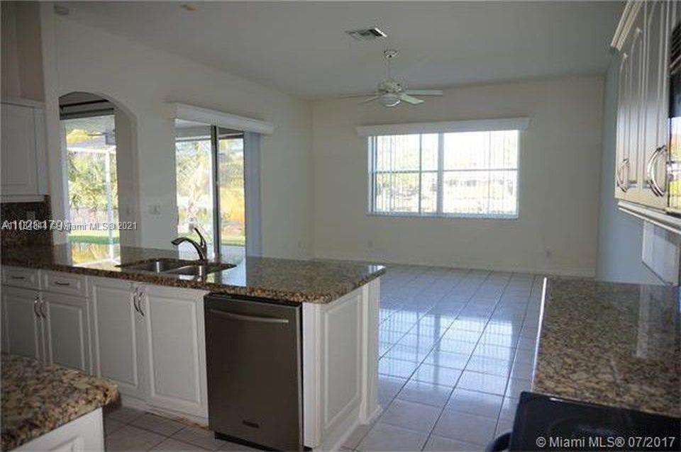 AS-IS condition, well maintained, Single Story house with Lake Front! Beautiful 4 bedroom with 2.5 bathrooms house with open layout, spacious kitchen with granite counter tops, a fenced-in patio in a large backyard, and beautiful water view. Located in Treasure Sound subdivision inside Silver Lakes Community. House is in great location, close to schools, shopping areas, restaurants, and has easy access to major roads, including I-75. House has accordion shutters. Cable and internet is included in the quarterly HOA fees. Great neighborhood, located on west side of Pembroke Pines.