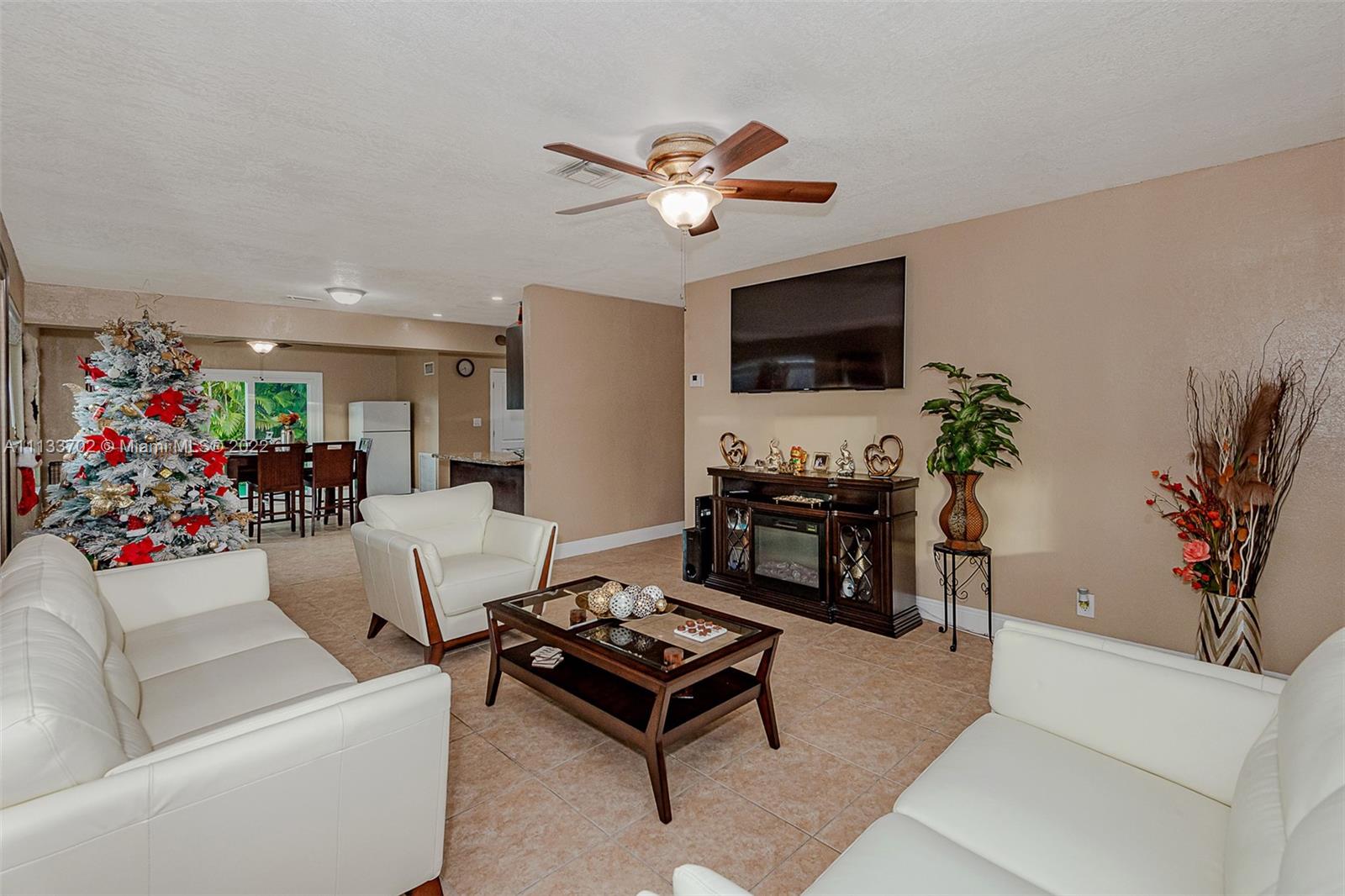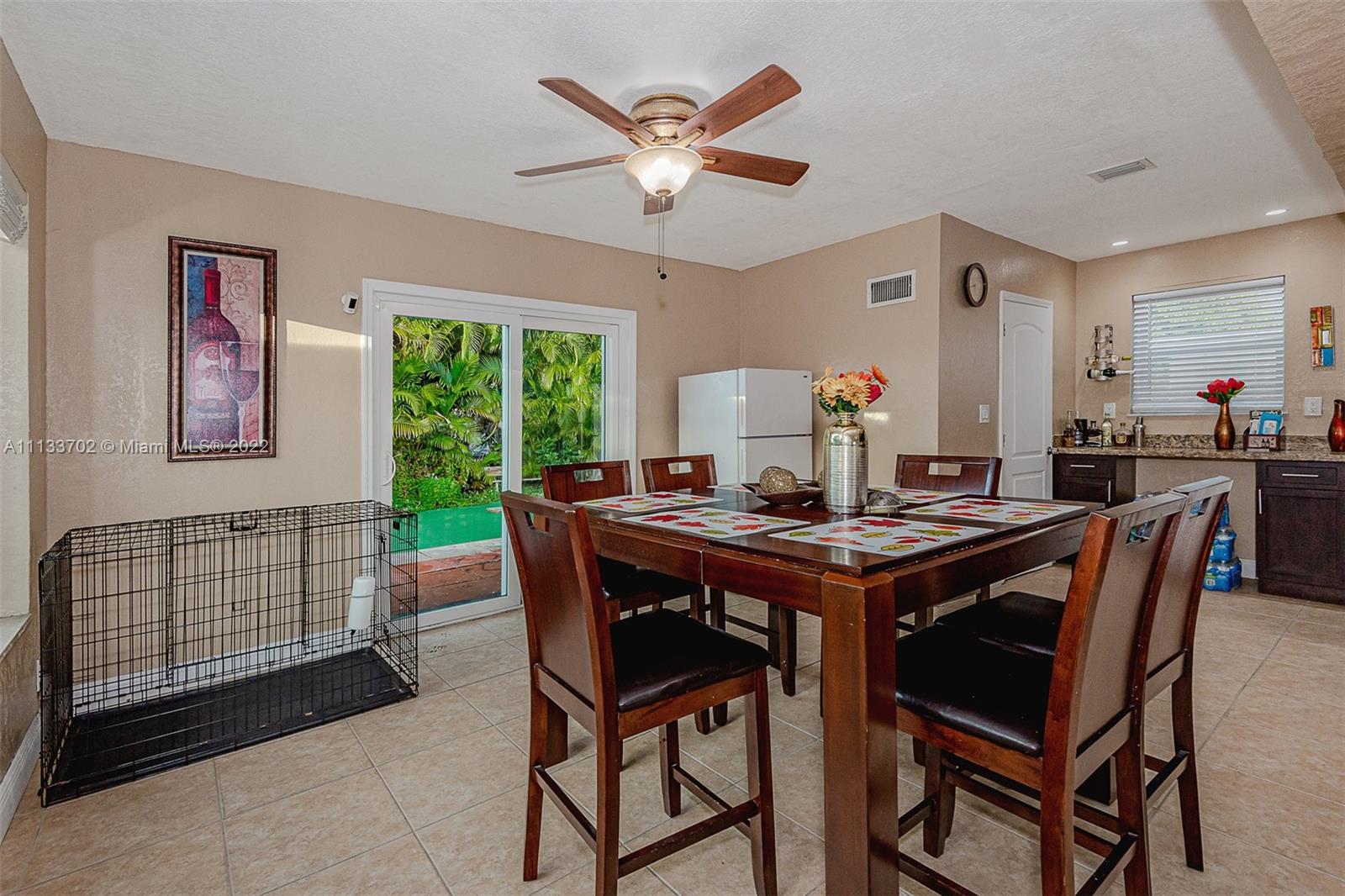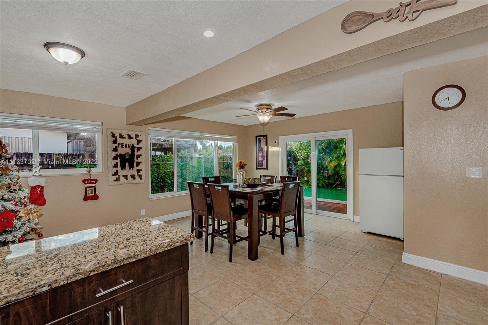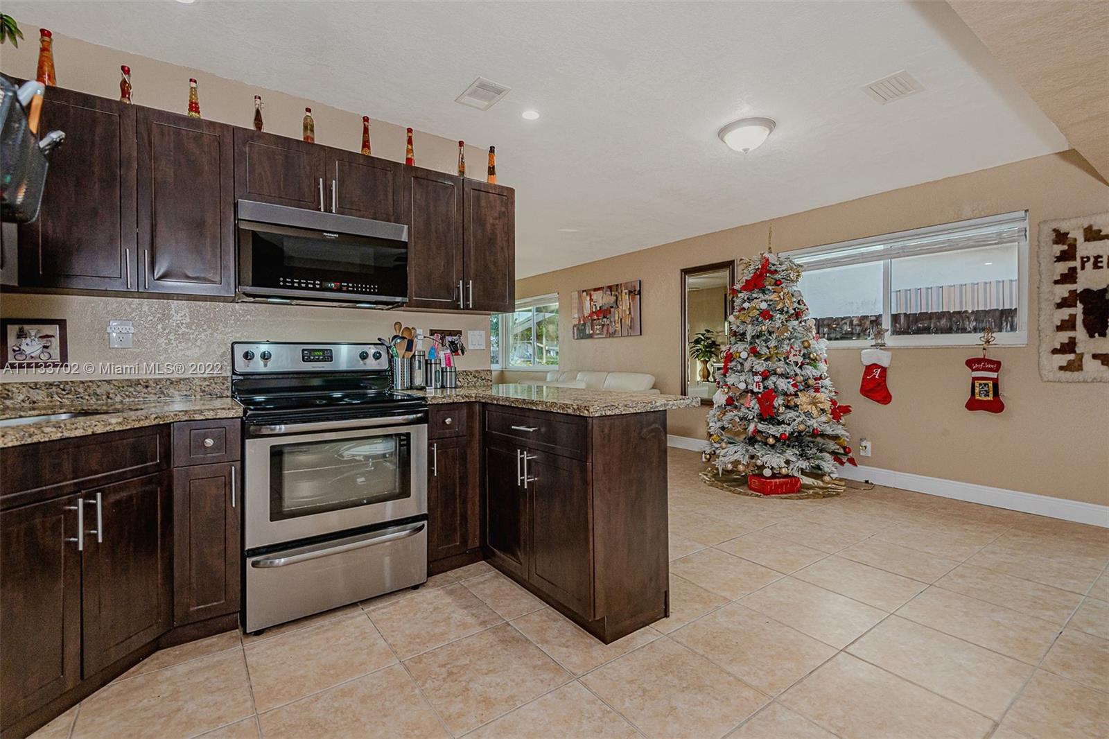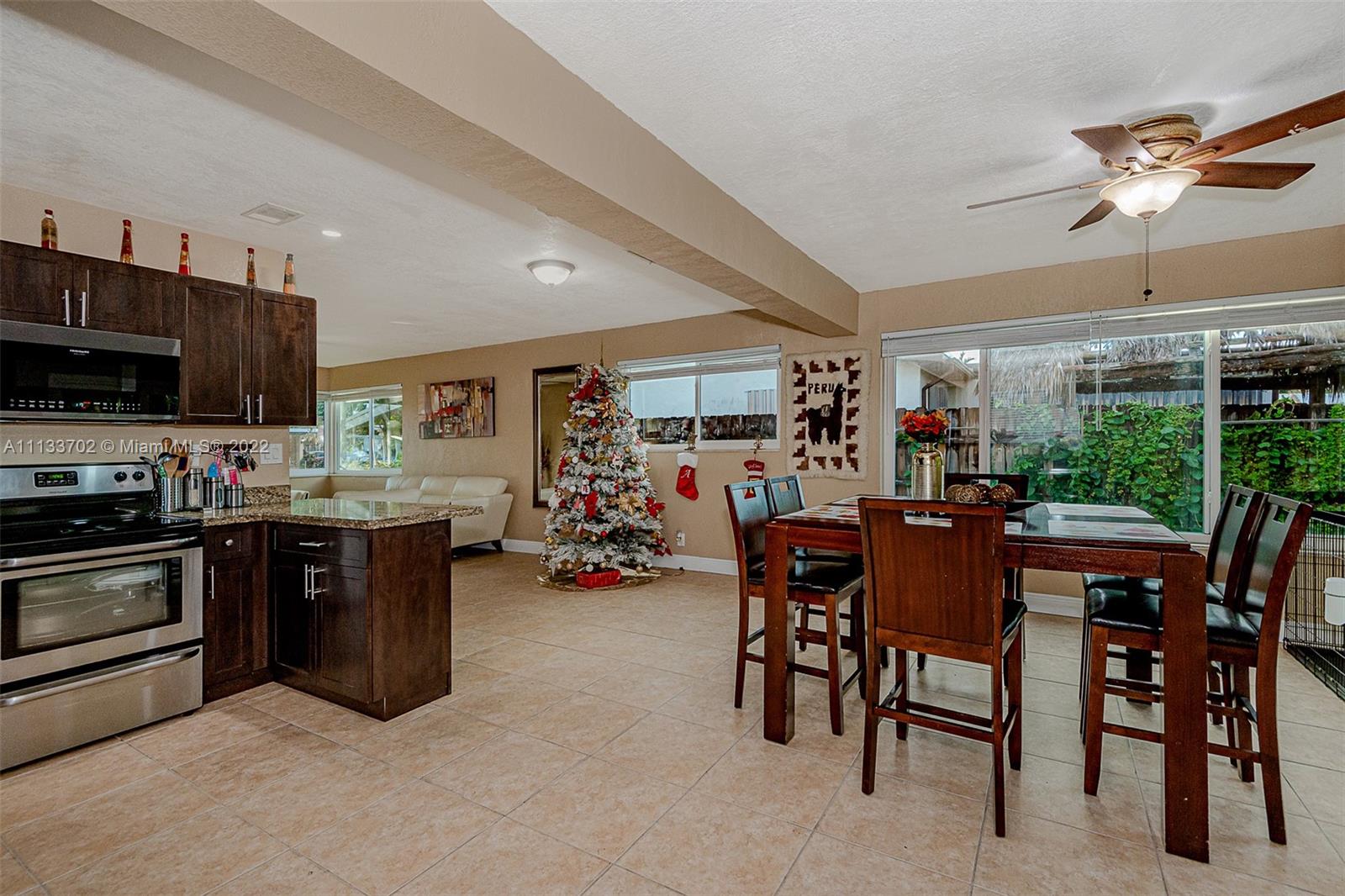 Move right into this beautifully updated home in Hollywood. New roof and impact windows and doors. Open Eat in kitchen with granite counter tops and stainless steel appliances and Separate wet bar. Tile Floors throughout. Nice sized bedrooms and separate laundry room too! Private fenced in backyard with extra shed for storage. Close to all major highways and in a great school district! Hurry, this home won't last long.