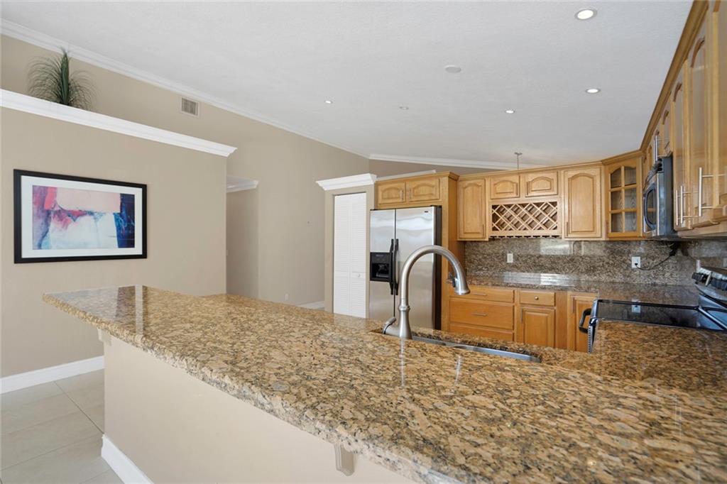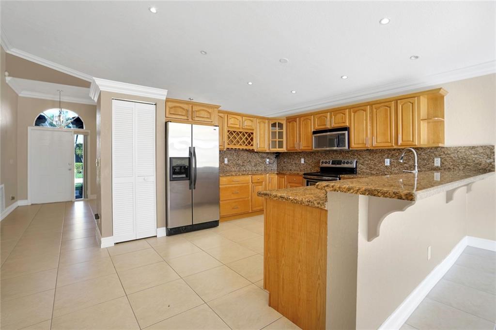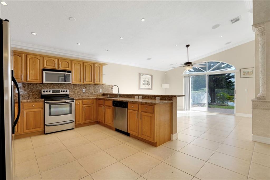 Wide lakefront setting overlooking preserve area in very private setting. 2020 New tile roof. Upgraded, neutral tile in all living areas and bedrooms. Volume ceilings, big living & dining room. Large kitchen w granite counters and newer appliances opens to family area with spectacular waterfront vistas. Master Suite with separate tub & shower and walk-in closet. Good sized bedrooms 2 & 3 w upgraded bathroom & fixtures. Newer AC, water heater. Accordion hurricane shutters, newer exterior paint & recent landscape refresh. Great community w low HOA, area parks, close to recreation areas & shopping. Walk or bike to A rated elementary, nearby top rated middle & high school. Convenient to everything that Silver Lakes alley has to offer. Offers above asking should not be subject to appraisal.