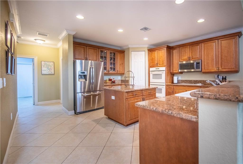 Beautiful home with NEW ROOF, 5 bedrooms/5 bathrooms + oversized loft. The house has 3 master bedrooms. Main master bedroom is on the first floor along with another mini suite with its own private bathroom. The third master bedroom is on the second floor. Gourmet kitchen with center island and granite countertops, new A/C unit, new water heater, accordion shutters. Tile on the first level, wood floors on the second floor and stairs. Great outside area with lush mature landscaping and plenty of privacy. Enjoy the extended patio, fruit trees, and peaceful lake view.