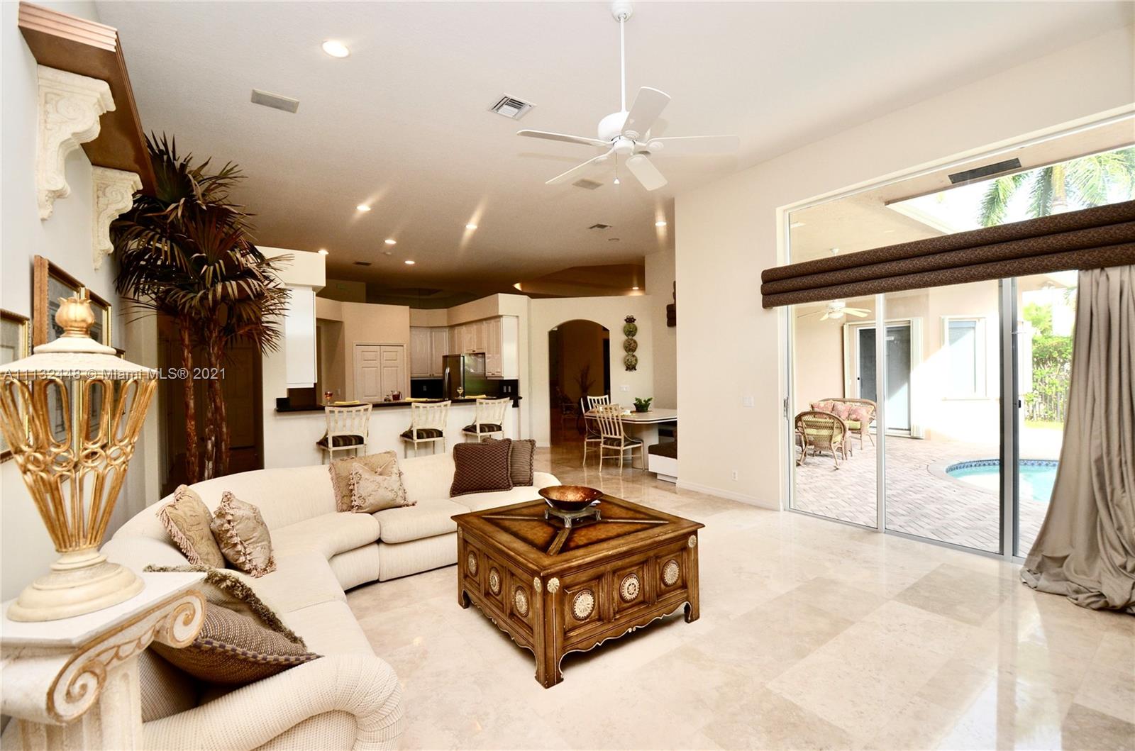 ABSOLUTELY IMPECCABLE HOME LOCATED IN THE MOST SOUGHT AFTER NEIGHBORHOOD OF MONTEREY IN WESTON HILLS COUNTRY CLUB, A PREMIER GOLF COMMUNITY. RAISED FOYER ENTRY, MARBLE/WOOD FLOOR THROUGHOUT, BEAUTIFUL TRAY CEILING, 42" KITCHEN CAB, GRANITE COUNTER W/SS APPL.POOL AREA WITH TROPICAL LANDSCAPING FOR PEACEFUL RELAXATION & ENTERTAINMENT, ELECTRICAL REAR AWNING, CUSTOM DRAPERIES, WORKING OFFICE W/BUILTIN BOOKCASE & DESK, MASTER BED W/SITTING AREA, SURROUND SOUND SYSTEM & CENTRAL VACUUM SYSTEM, NEWLY INSTALLED TWO AC UNITS, WATER HEATER, NEWLY INSTALLED IMPACT DOORS & WINDOWS, CIRCULAR DRIVEWAY,CENTRAL MONITORED 3 PANEL ALARM SYSTEM, GATED COMMUNITY, SECURITY PATROL, A RATED SCHOOLS. EQUAL HOUSING OPPORTUNITY.
