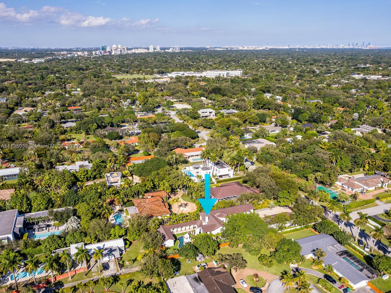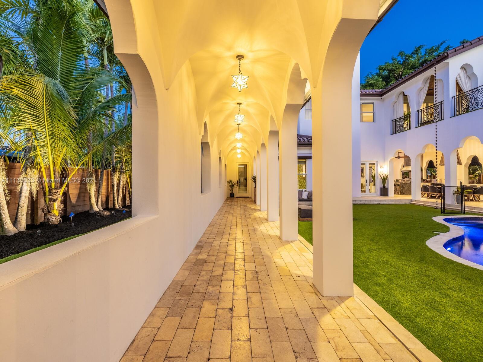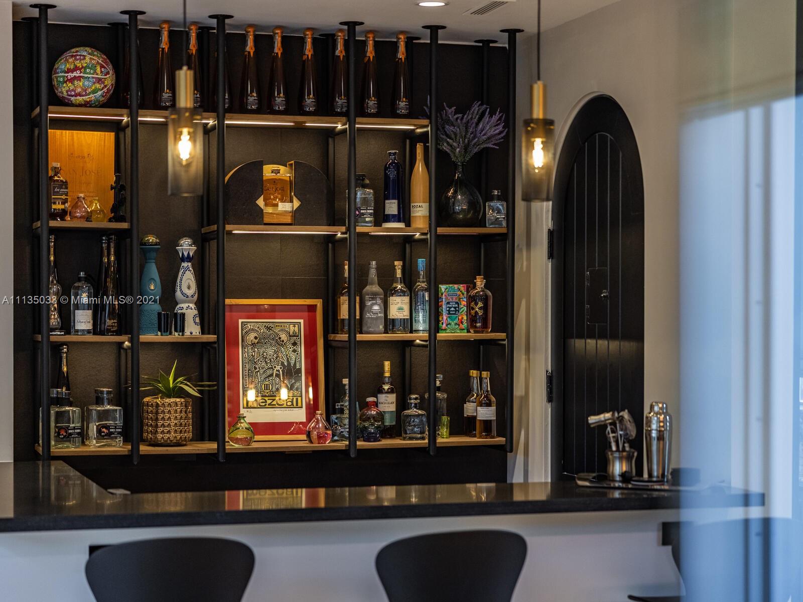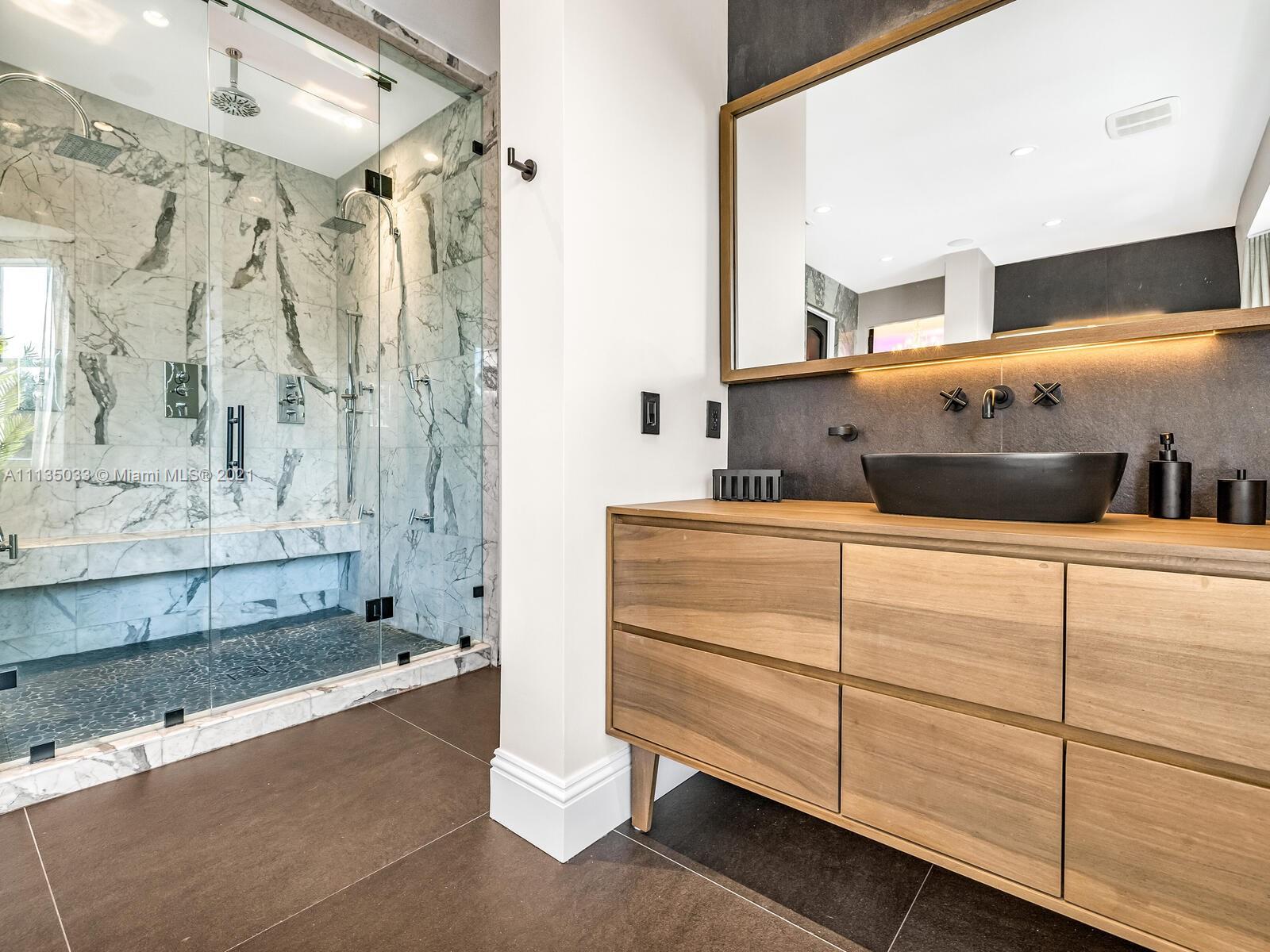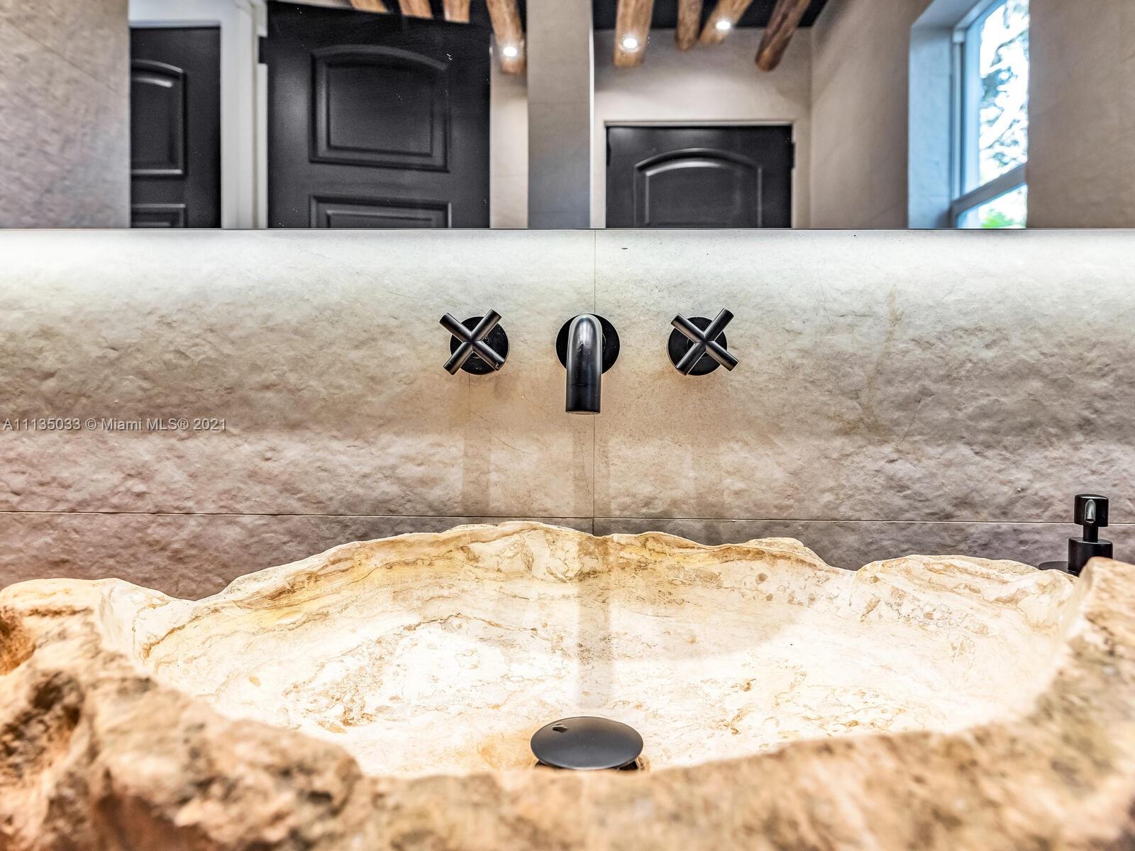 This Modern-Mediterranean resort style home is expertly designed for Miami entertaining, including a 2-bed Guest house! Impressive arrival through oversized doors lead to hacienda inspired courtyard with custom water fountain and koi pond, complete with viewing deck. Highly coveted covered outdoor entertainment area including full outdoor Mia Cuccina kitchen with top appliances. All new lush landscape, premium turf, and light system installation. Spectacular Lagoon style pool curls around stunning outdoor spiral staircase leads to oversized loggia, perfect for sunset viewings. Extensive interior renovation-all new custom designer bathrooms, surround sound movie theatre, wine bottle display, and entertainment bar to name a few. Separate living quarters and plenty of parking.Turn-key estate.