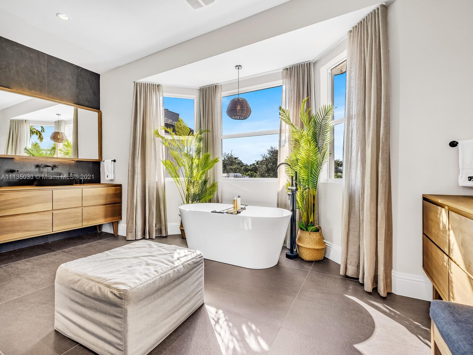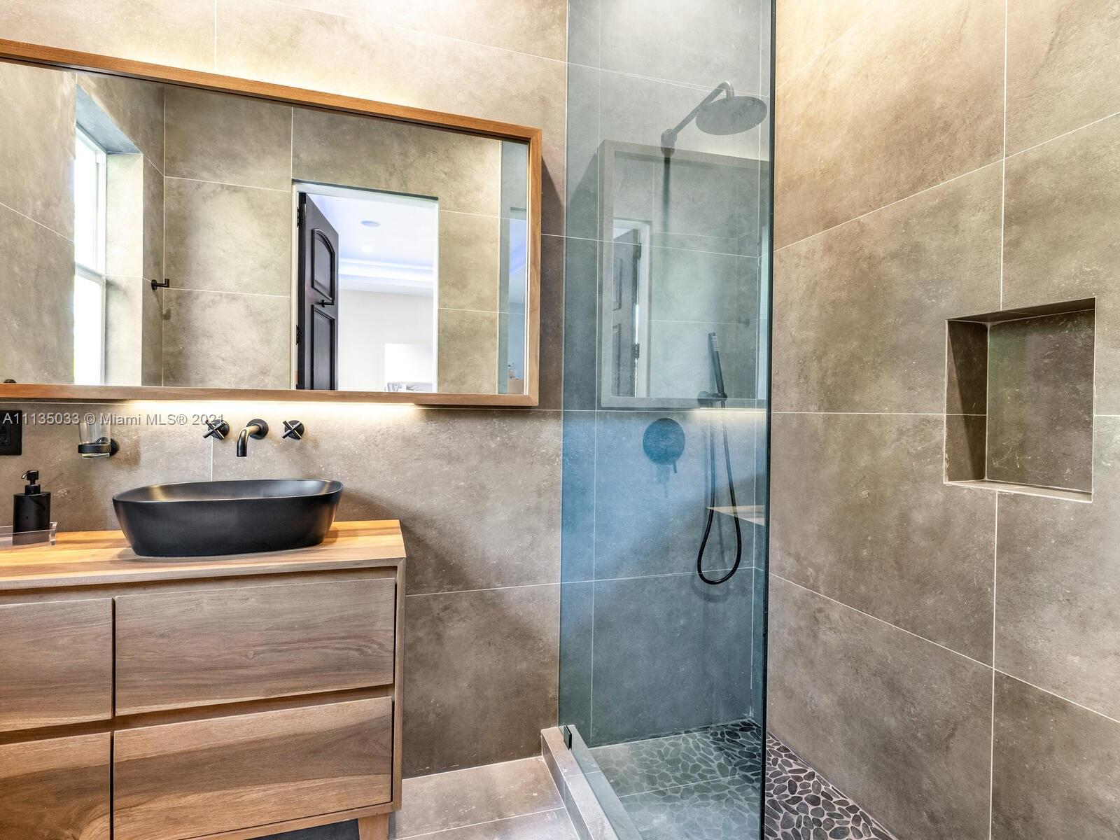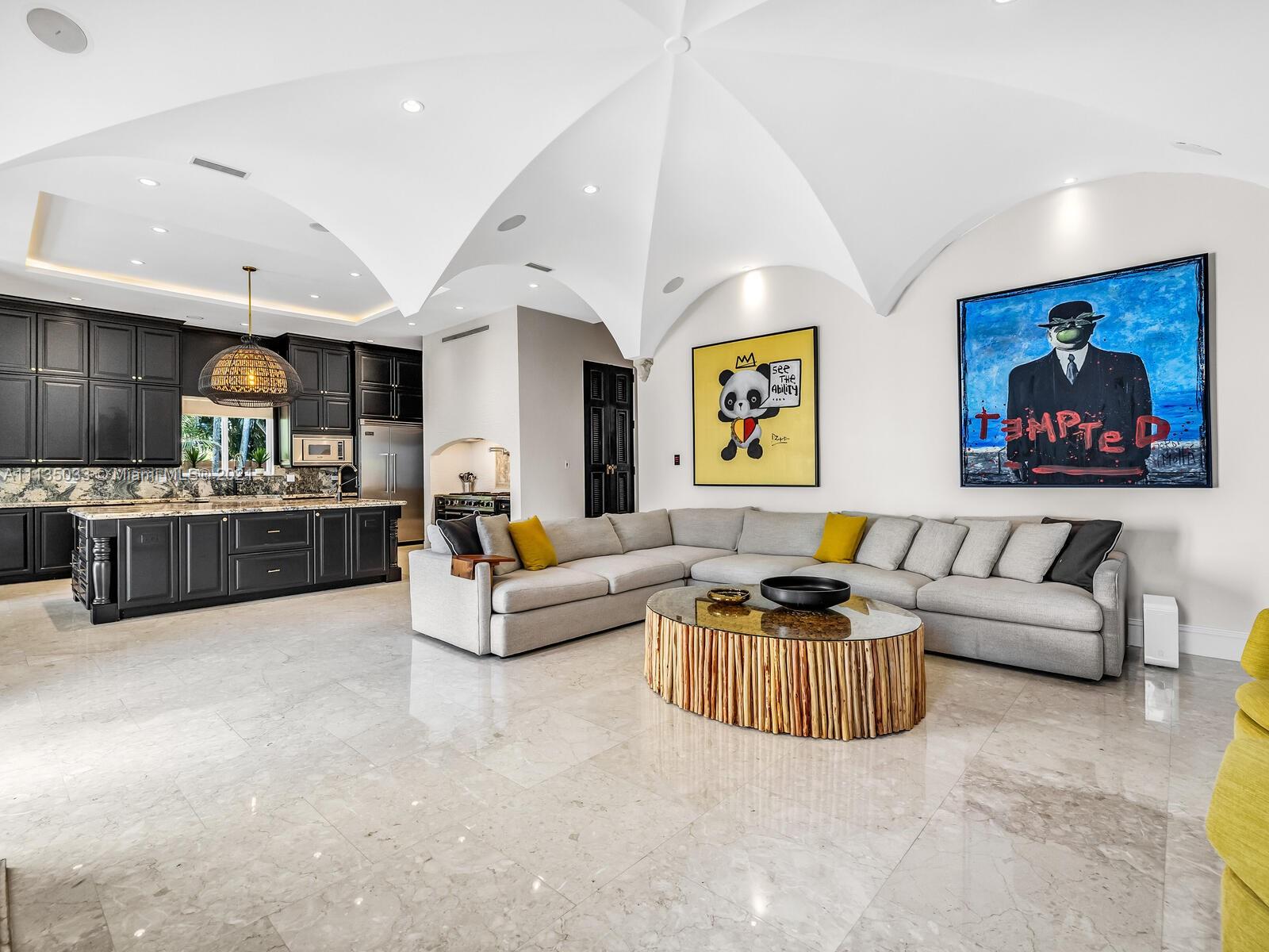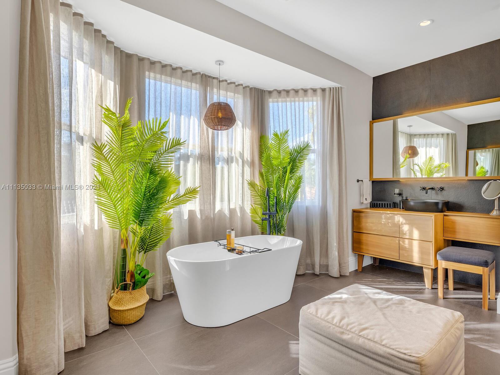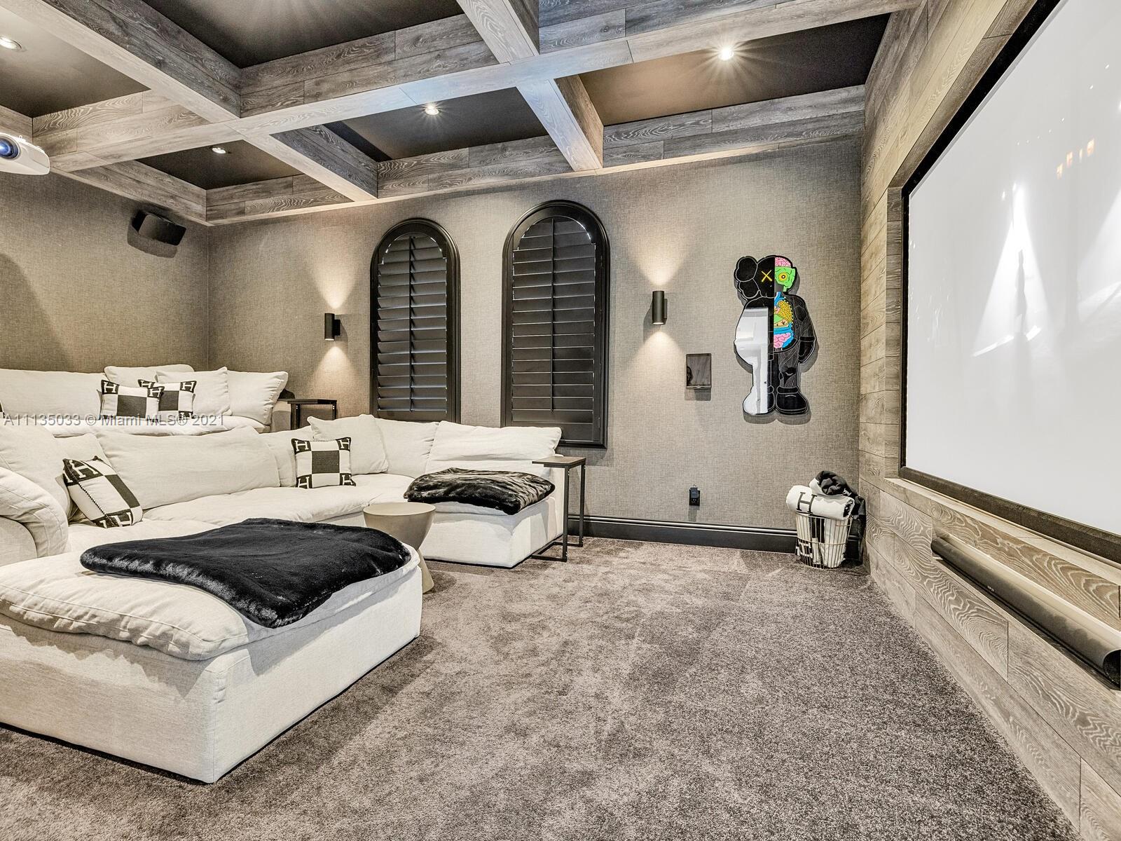 This Modern-Mediterranean resort style home is expertly designed for Miami entertaining, including a 2-bed Guest house! Impressive arrival through oversized doors lead to hacienda inspired courtyard with custom water fountain and koi pond, complete with viewing deck. Highly coveted covered outdoor entertainment area including full outdoor Mia Cuccina kitchen with top appliances. All new lush landscape, premium turf, and light system installation. Spectacular Lagoon style pool curls around stunning outdoor spiral staircase leads to oversized loggia, perfect for sunset viewings. Extensive interior renovation-all new custom designer bathrooms, surround sound movie theatre, wine bottle display, and entertainment bar to name a few. Separate living quarters and plenty of parking.Turn-key estate.