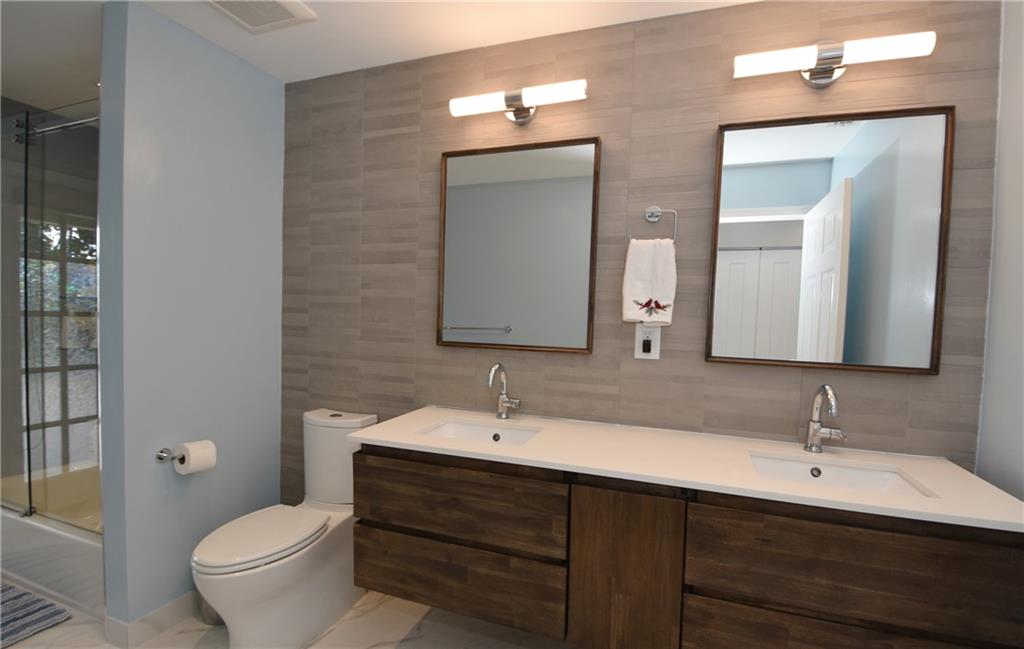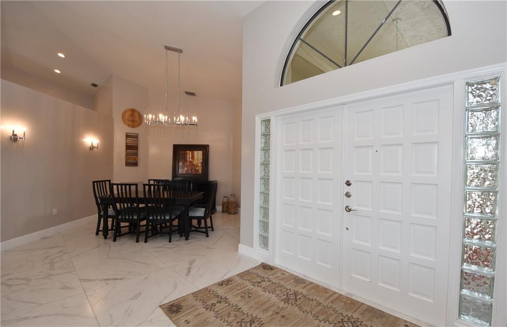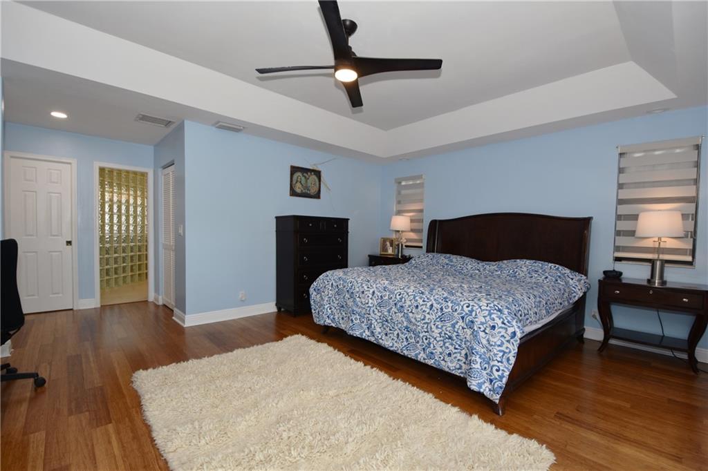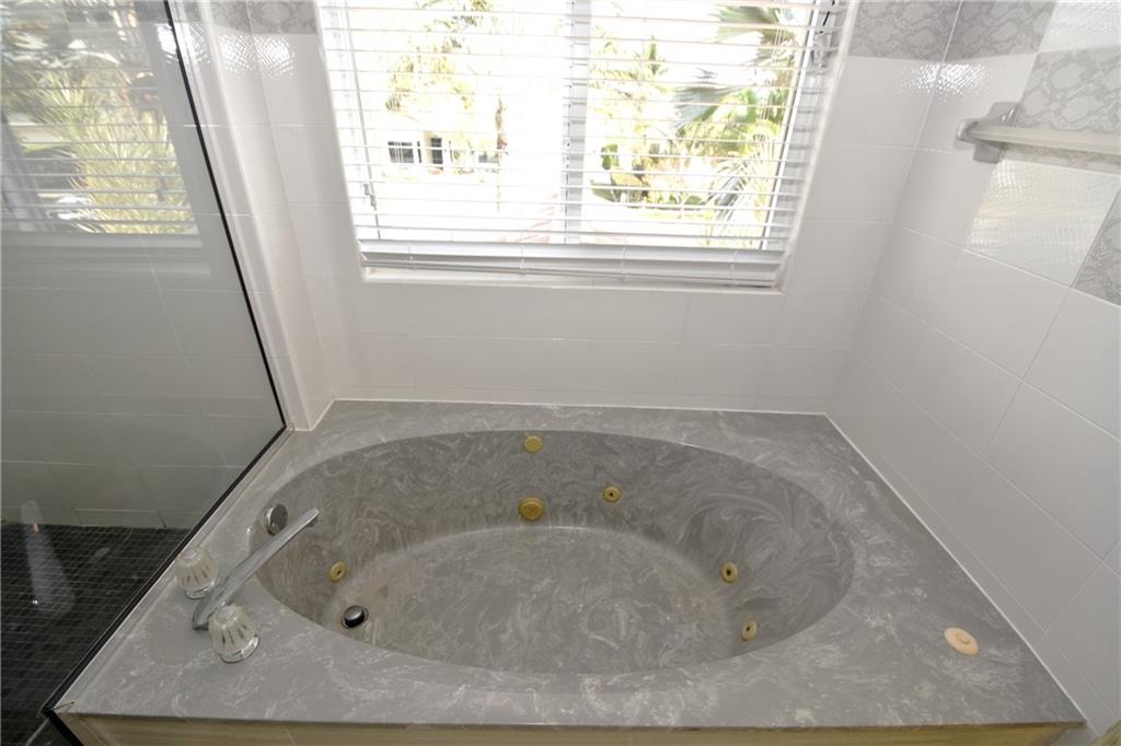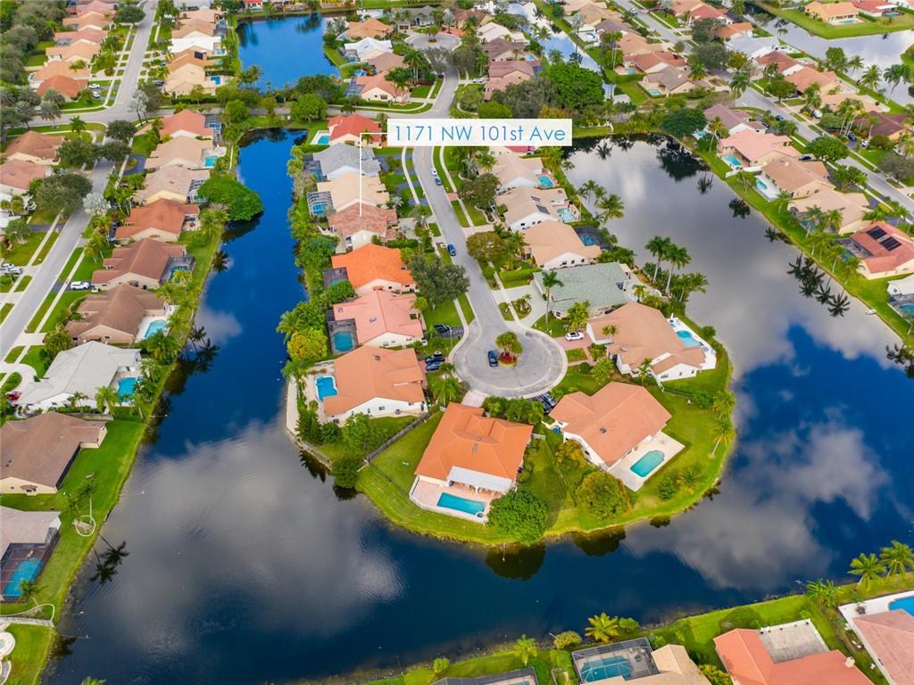 Stylish, sophisticated and polished best describes this unique model with expansive sliding doors and windows on both levels that seem to dissolve the normal boundaries between indoor & outdoor living. Kitchen masterpiece has espresso-stained shaker doors and cabinetry with gorgeous quartz counter tops, top-line appliance package and glass mosaic backsplash and renovated utility space with powder room. Generous size master suite with tray ceilings occupies the entire second floor with private balcony overlooking the fenced-in garden with serene lake view. Secondary bedroom wing shares a beautifully remodeled cabana bath and there is a combination of 12x24 porcelain tile floors and laminate, flat ceilings, new fans, window treatments and water filtration system - all on a cul-de-sac street.