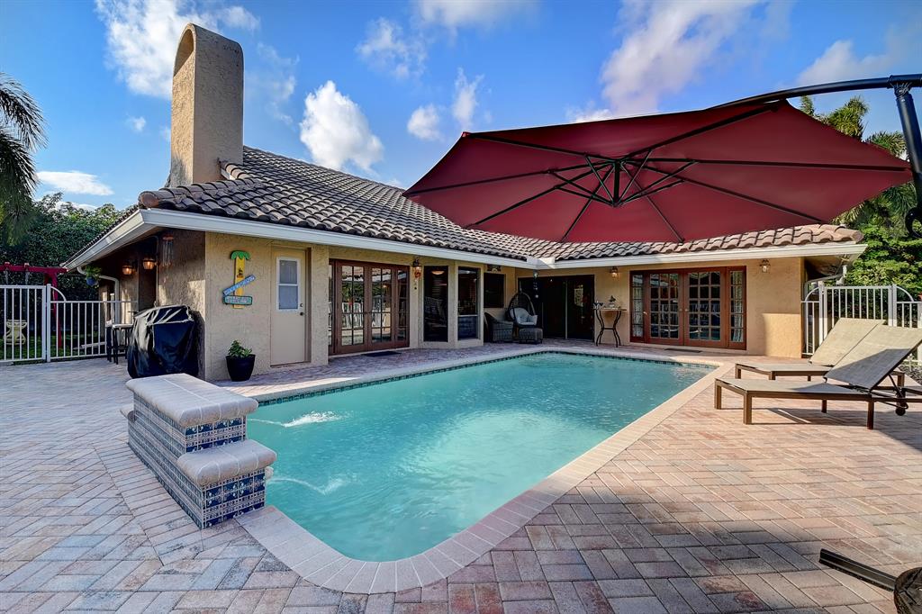 Motivated sellers! Highly desirable New Floresta features Spanish architecture and luxurious feel in the very heart of east Boca. Home is centrally located, a short walk to Boca Shopping at prestigious Town Center Mall , convenient access to turnpike and I-95 for commuters. Split bedroom floor plan 4 bedroom 3-1/2 bath. Zoned A rated public schools with private education in close proximity. Natural light, Cathedral ceilings open kitchen to living area. character abound with Spanish tile, wood burning fireplace, large beams and tile accents. Convenient cabana bath with exit to pool complete with lion head fountains. New Duct System with Dual A/C units 2 REME HALO air purifiers, and u/v light. hurricane Rated garage doors. Roof was replaced in 2015 and home has central vac system.