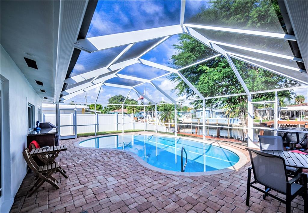 Beautifully renovated 4 bedroom 3 bath waterfront home located in the desirable Cypress Harbor community. Welcome guests into a modern, bright, and spacious open floor plan with 12 ft. high ceilings, porcelain flooring throughout the home with views of the pool and canal. This recently updated home features 70’ of water frontage, a split floor plan with two master suites, stainless steel appliances, hurricane impact windows, newer AC, roof, and water heater. Step outside to your screened-in pool with accompanying entertainment deck and dock for your boat. Minutes from the beach, I-95, restaurants and much more. Come see for yourself!