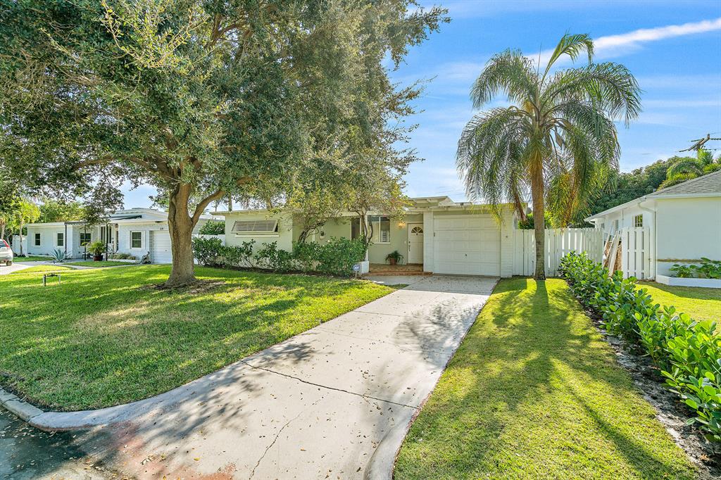 Mid-Century Modern Charmer in the Heart of 'SoSo'. This South of Southern home features 2 bedrooms, 2 bathrooms, garage, Spanish tile throughout, impact windows/doors, wood-beamed ceilings, laundry room, updated kitchen + bathrooms, front porch w/ pergola, & a spacious/fenced backyard. Fantastic location on a through-street to the Intracoastal Waterway. Walk or ride your bike along beautiful Flagler Drive. Minutes to beaches, Palm Beach/Worth Avenue, world-class dining/shopping, downtown WPB/Clematis, Rosemary Square, Kravis Center, Brightline Station, PBI Airport, South Olive Elementary/Park/Community Center (new tennis courts), PB Zoo, S. Fl. Science Center, great schools, golf courses, Antique Row & so much more!