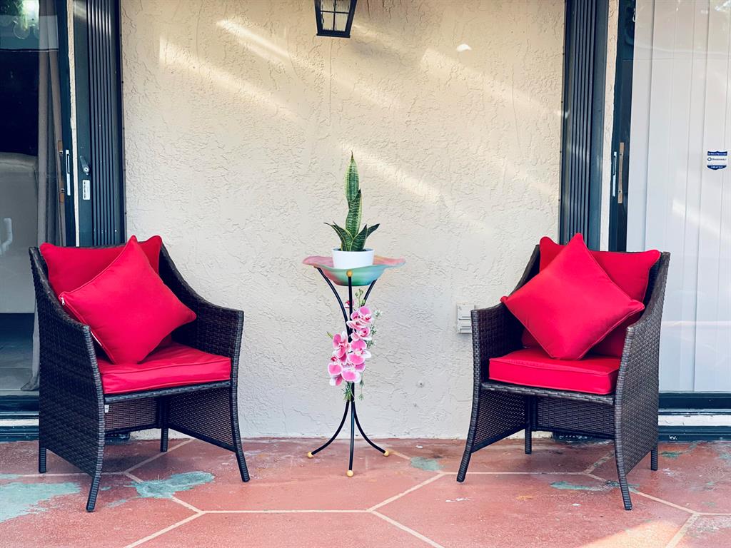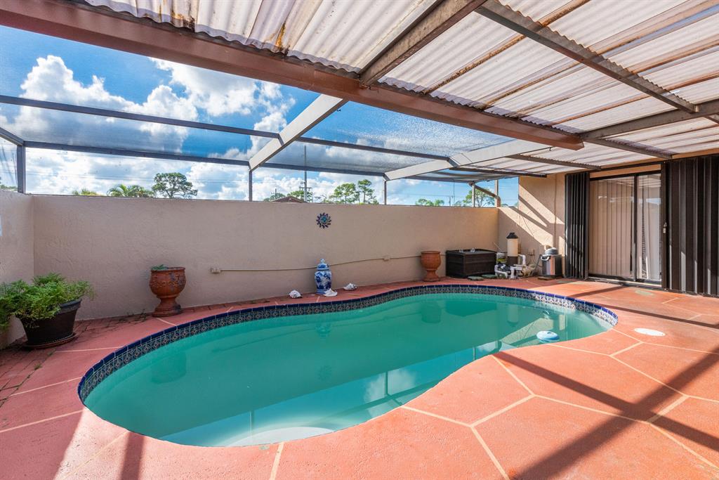 One story Townhouse, with large enclosed patio & Private Pool, Great floor plan; each bedroom has their private bathroom and sliding glass doors to enjoy the patio & pool. High ceilings in the living areas witch adds to the spacious feeling. Interior washer and dryer, Both Bedrooms enjoy a large closet and patio view, 2 assigned Parking spots and guest spots in front of the unit. HOA fee is very low, no age restrictions or rental restrictions, very good location , near PBIA, downtown WPB, City place, and easy access to I-95 & Turnpike.
