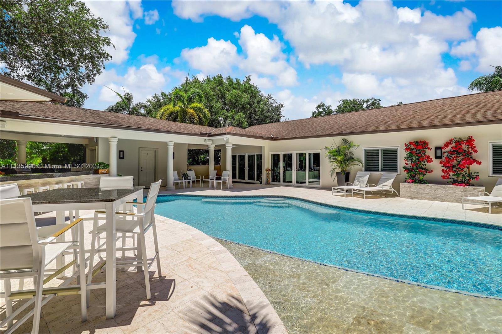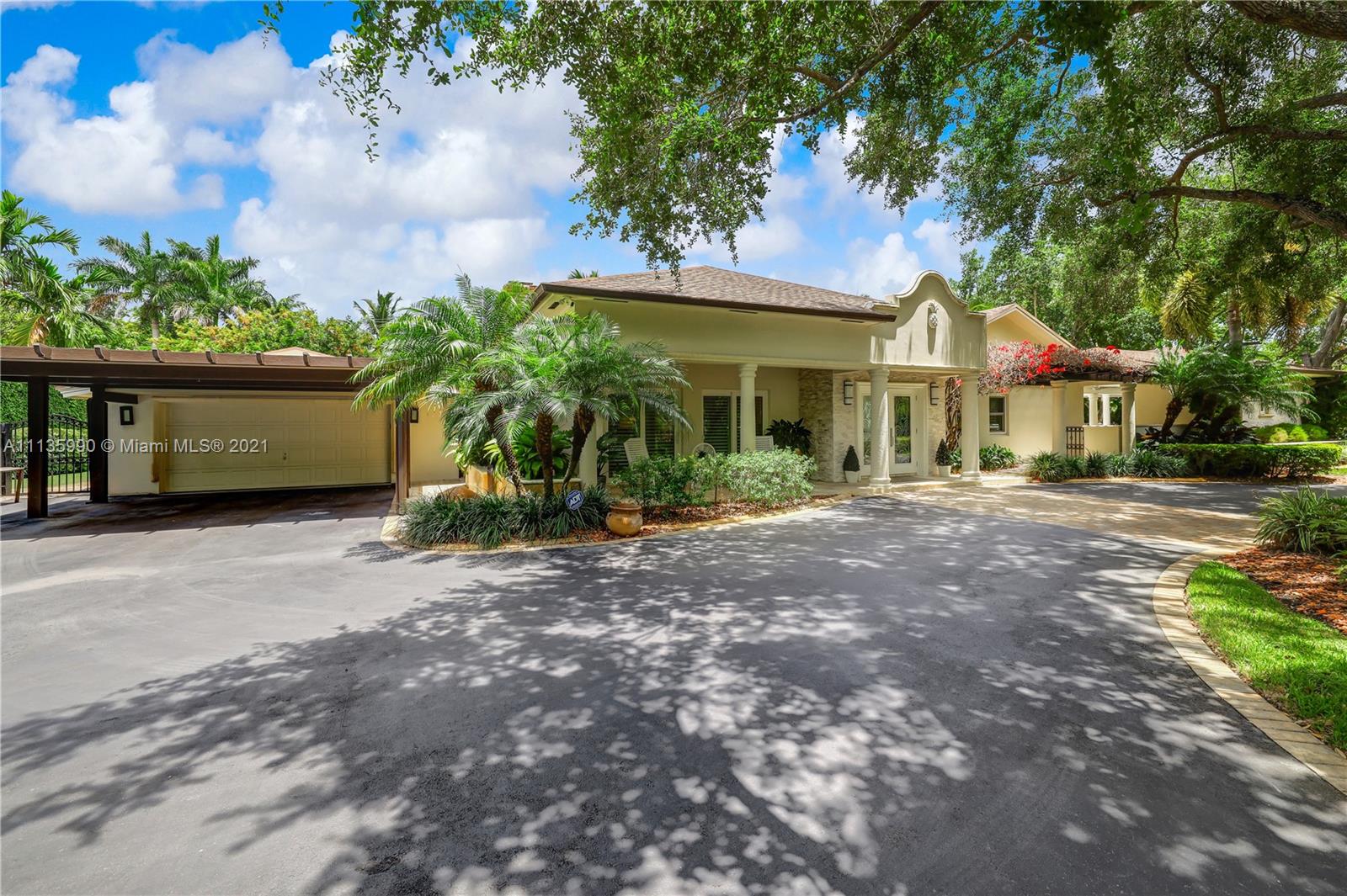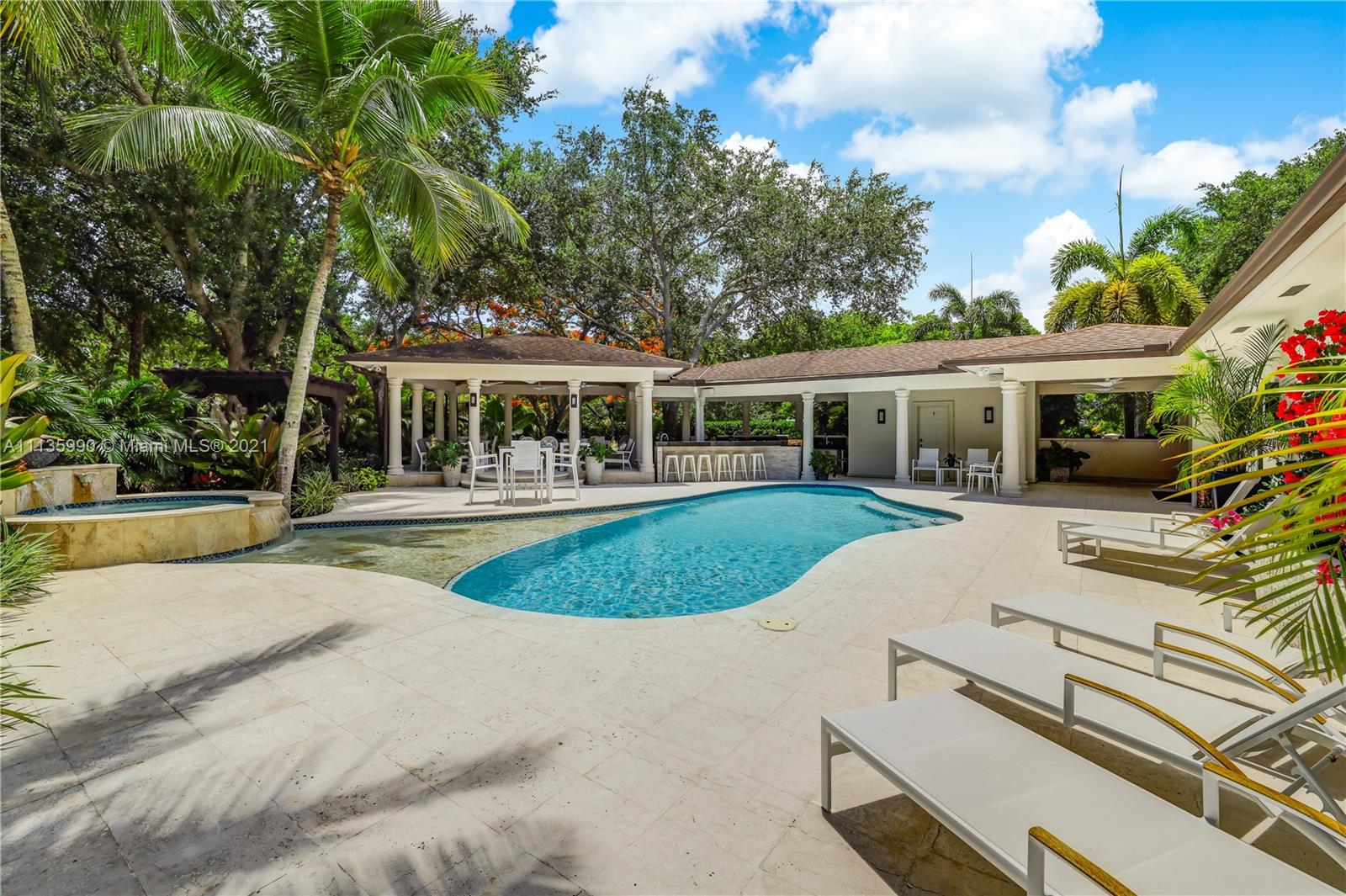 Beautifully updated Pinecrest property features 5 bedrooms and 6.5 baths. The residence sits on a lovely acre lot covered with beautiful trees. The main house features 3 bedrooms and 3.5 baths, a family room, and a formal dining, living area. The charming separate guest house has 2 additional bedrooms and full baths, as well as a kitchen and living room. The yard offers wonderful entertaining spaces: A large gazebo, a fire pit, generator, pool heater, an outdoor kitchen and BBQ, and a separate cabana bath. Note: SQ FT is larger than tax roll, along with beds/baths.