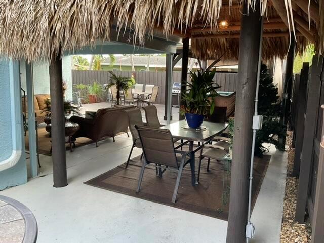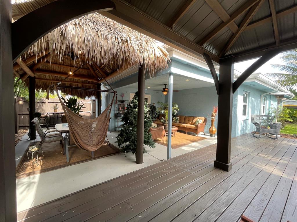 DO NOT miss the opportunity to own this unique oasis in a great location in Cresthaven. NO HOA! Great curb appeal Close drive to the beaches! This beauty has 3 bedrooms and 2 bathrooms with the potential for a 4th bedroom and a 3rd bathroom. The master bedroom is gigantic! It has a walk-in closet, and the master bathroom has a jacuzzi and a separate shower totally remodeled in 2021. This recently upgraded (2020) home offers: a new roof, hurricane impact windows & doors, new flooring, recently painted in and out, and fenced in beautifully landscaped backyard with a jacuzzi under a cedar wood gazebo with a metal roof , a tiki hut built by a Native American Indian, Lanai, deck. The prior owner was an engineer. Gorgeous kitchen with granite countertop. Pet door. Huge laundry room. Murphy bed.