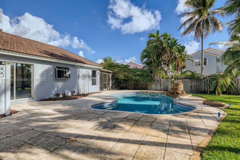 Prepare to be amazed by this 3 bedroom, 2 bathroom home in the highly sought-after Kensington Park neighborhood! As you enter the home, the living area welcomes you in with ample natural light and an open floor plan with sufficient space. Continue through to the kitchen that boasts wood cabinetry, durable countertops, and stainless steel appliances. A lovely dining area off the kitchen is perfect for family dinners or game nights. Retreat to the primary bedroom generous in size with an en suite bathroom featuring a beautifully tiled shower and large closet. Additional features include an in ground pool with a slide, a screened-in patio, and fenced-in backyard. Location is everything here being near shops, restaurants, and several highways!
