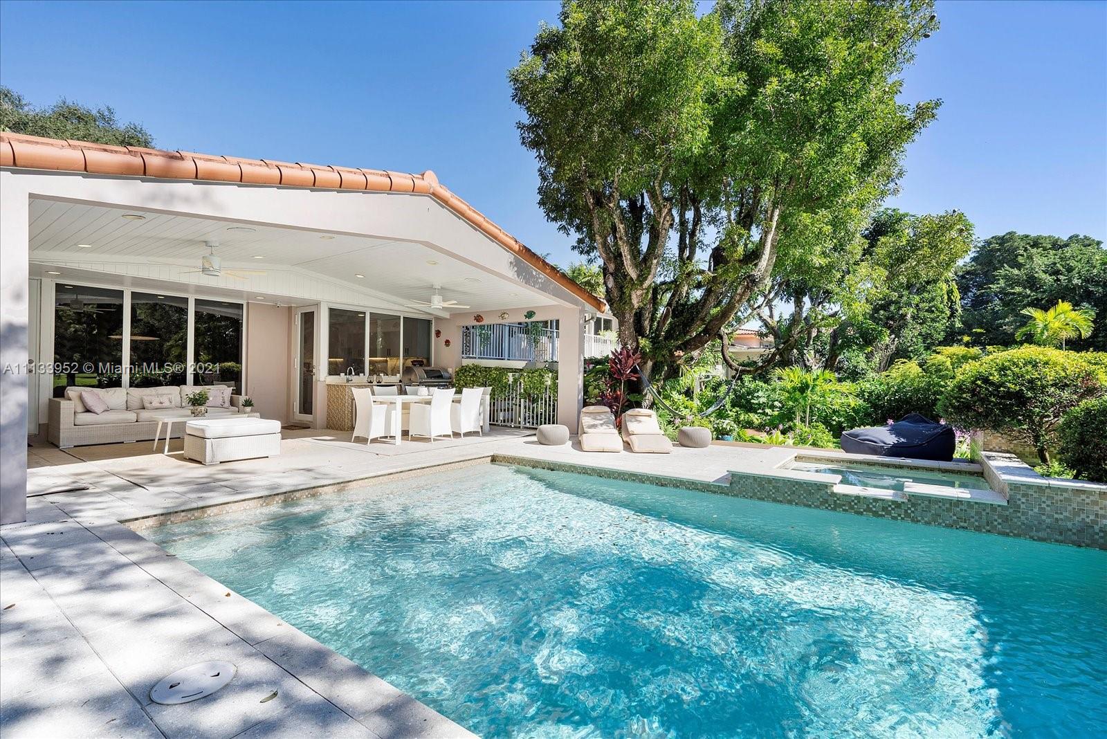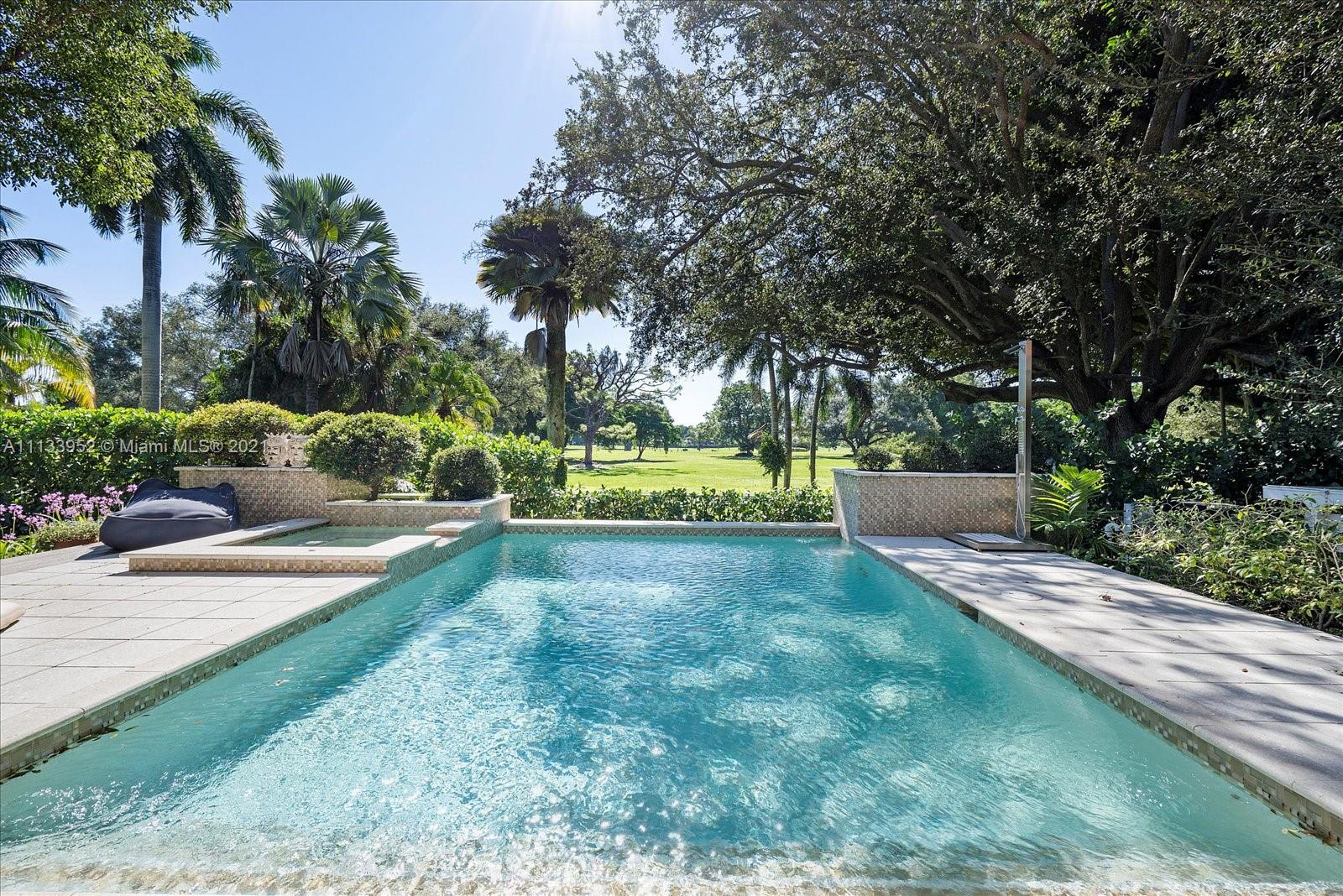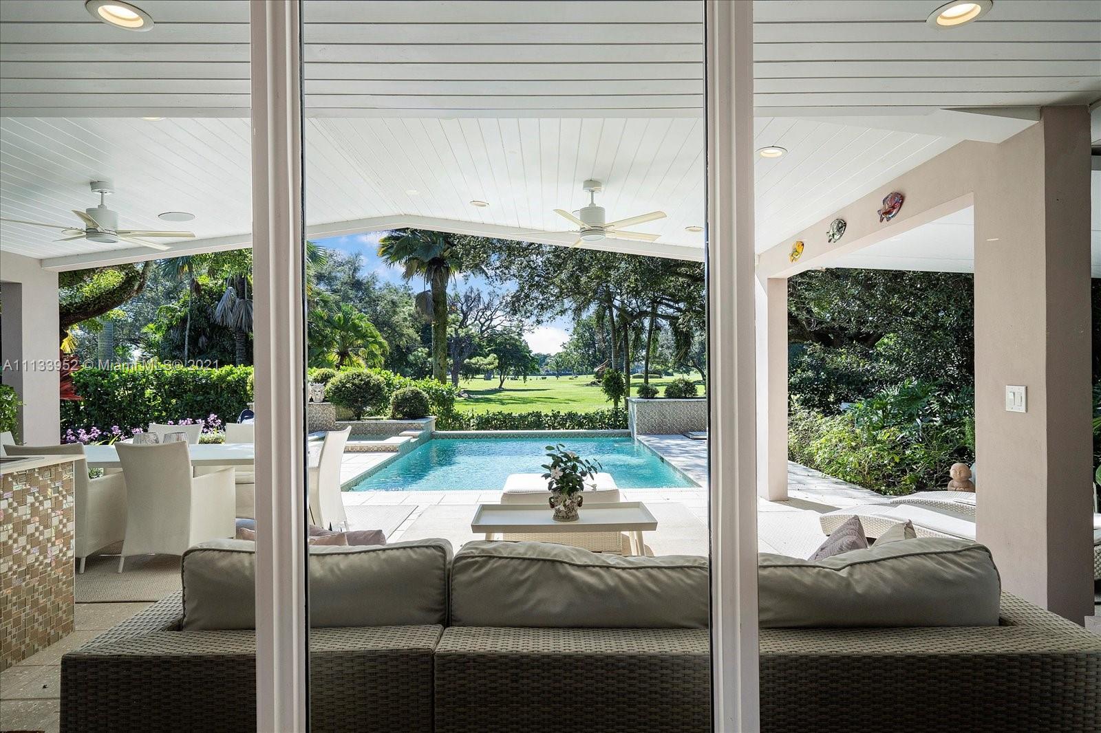 Gorgeous Golf Course views from this stunning and completely renovated 5 bed/5.5 bath house on very sought after 105th street in Miami Shores. The beautiful covered patio, outdoor kitchen, heated pool w jacuzzi overlooking the Golf, are perfect for entertaining. The tastefully remodeled house features wood floors, Carrara marble kitchen and bathrooms, a large office space, indoor sauna, natural gas fireplace, sound system, natural gas generator that covers the entire house, high impact windows and doors, 2 car garage with A/C, a spacious laundry room, built in safe, security system, professionally designed landscape and a beautiful deck. Centrally located at walking distance from Country Day school, the recreation center, tennis, restaurants and shopping.