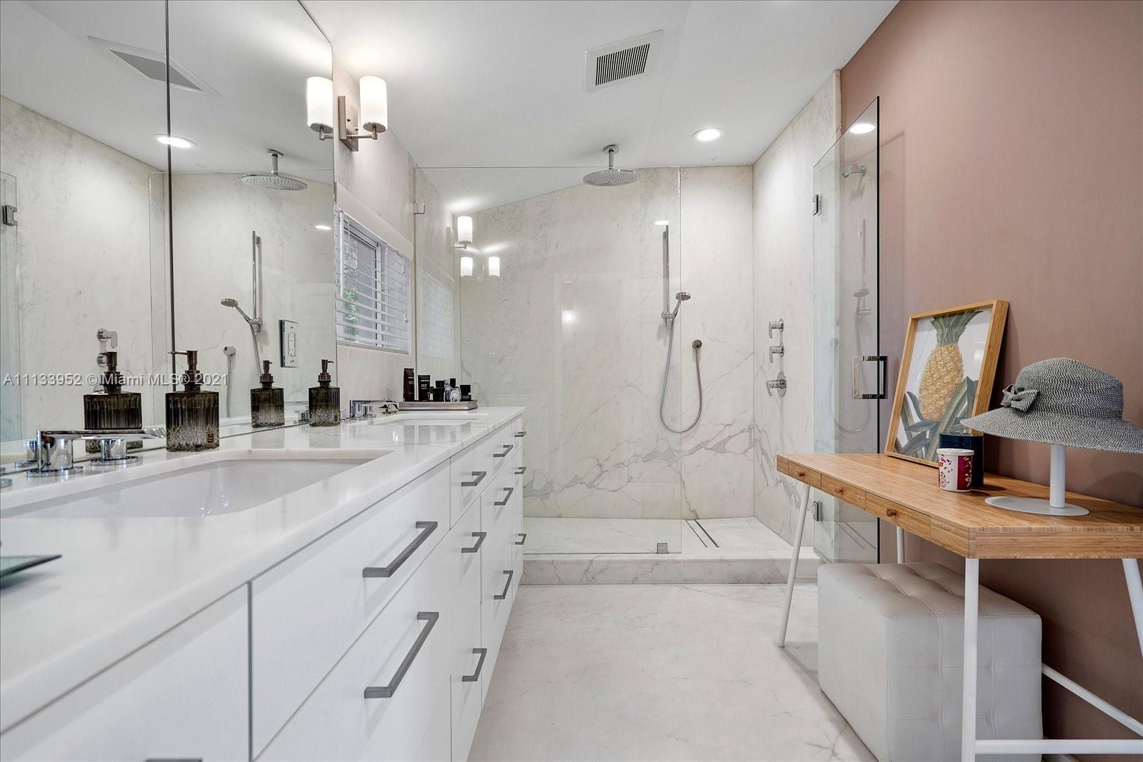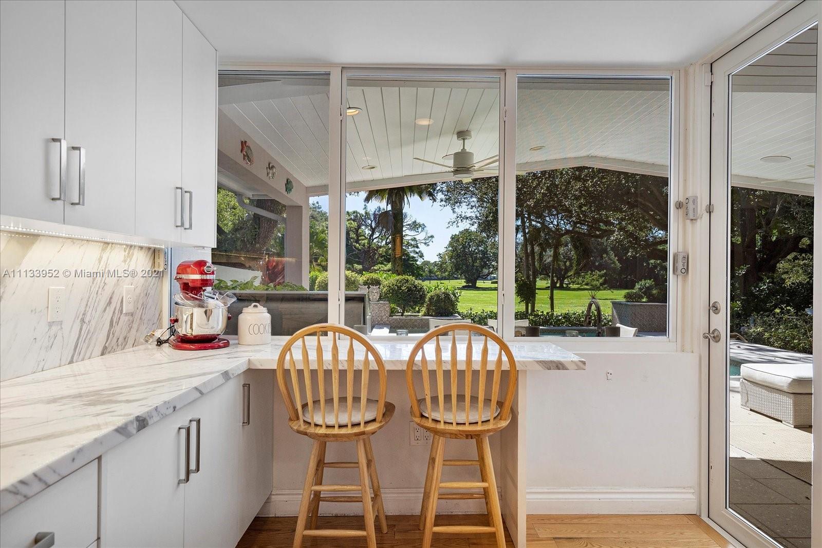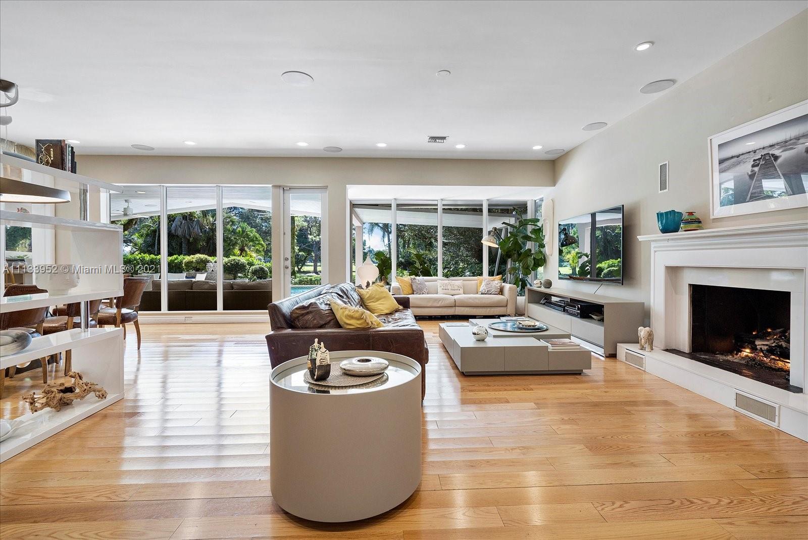 Gorgeous Golf Course views from this stunning and completely renovated 5 bed/5.5 bath house on very sought after 105th street in Miami Shores. The beautiful covered patio, outdoor kitchen, heated pool w jacuzzi overlooking the Golf, are perfect for entertaining. The tastefully remodeled house features wood floors, Carrara marble kitchen and bathrooms, a large office space, indoor sauna, natural gas fireplace, sound system, natural gas generator that covers the entire house, high impact windows and doors, 2 car garage with A/C, a spacious laundry room, built in safe, security system, professionally designed landscape and a beautiful deck. Centrally located at walking distance from Country Day school, the recreation center, tennis, restaurants and shopping.
