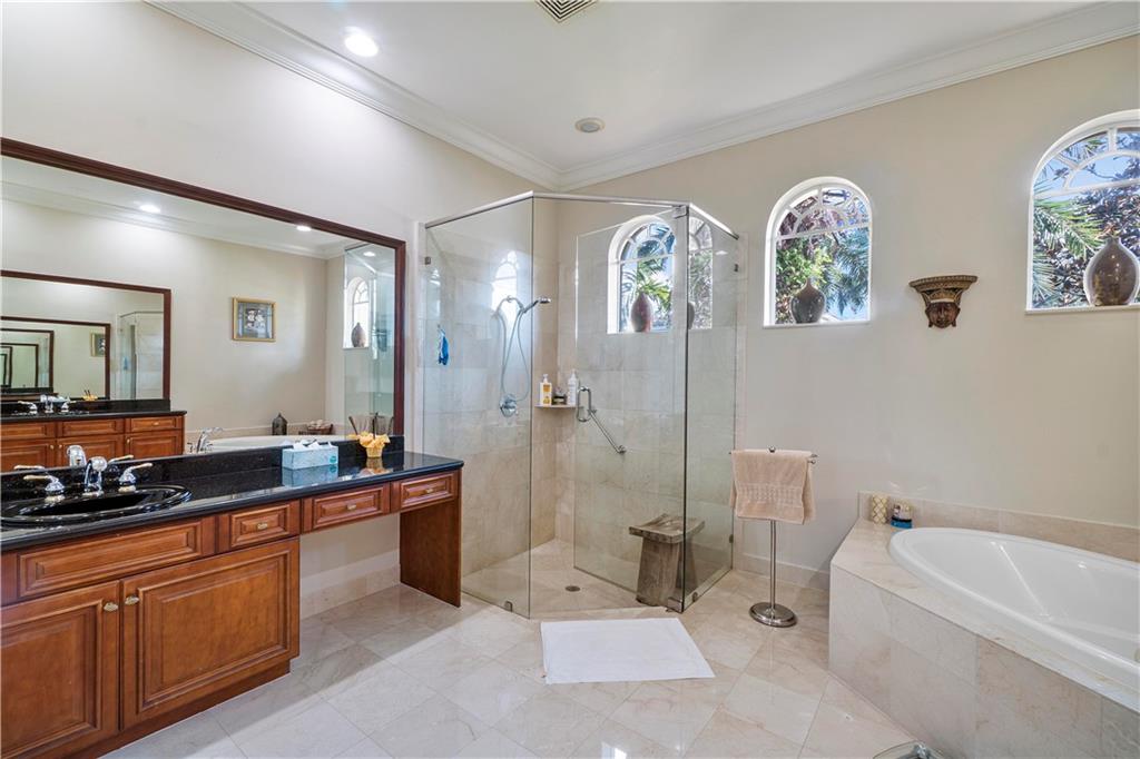 This Gorgeous home offers 5-Bedrooms, 5-Full Bathrooms plus a Huge Bonus / Game Room. Sought-After Floor Plan Boasts 4,613 Square Feet of Living Area and is Located on an Oversized Water Lot. This Picture Perfect Home features Soaring Ceilings & Windows Offering an Abundance of Natural Light. Features include Marble & Hardwood Floors, Crown Molding Throughout, Gas Fireplace, Wrought Iron Staircase, Tray Ceilings, Built-In Closets, Covered Patio, Oversized Pool, Spacious Back & Side Yard and Three Car Garage. Amazing Chefs Kitchen with Gas Stove, Sub-Zero Refrigerator, Double Oven, Two Dishwashers and Two Sinks. Beautiful Master Suite on the first floor with Wood Floors, Custom Closets, Tray Ceilings, Double Crown Molding and Access to the Backyard Patio. You do not want to miss this one!