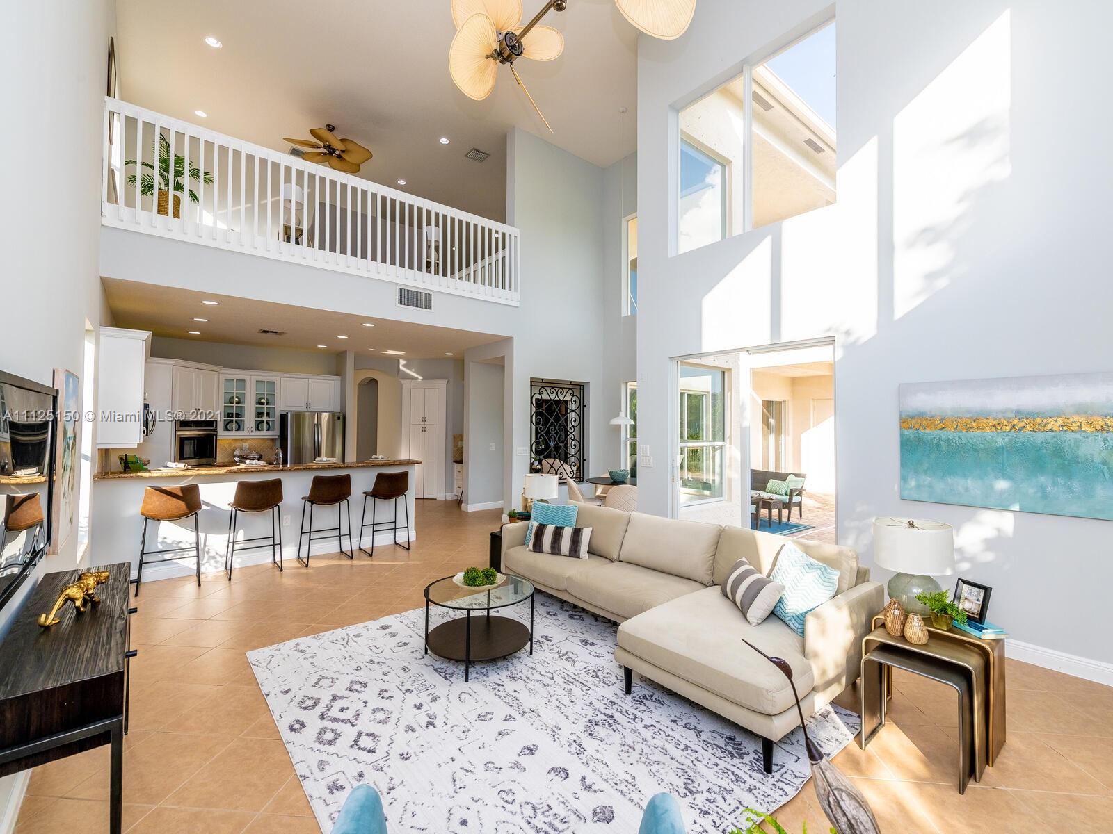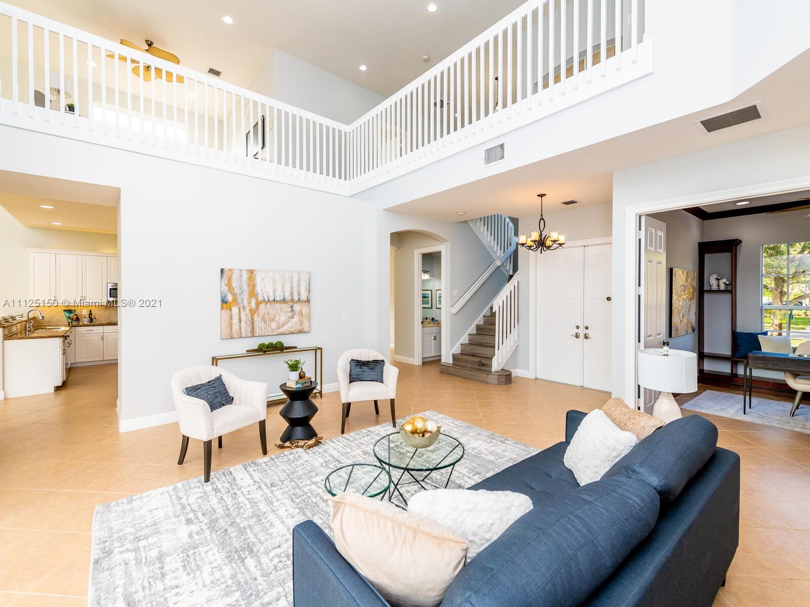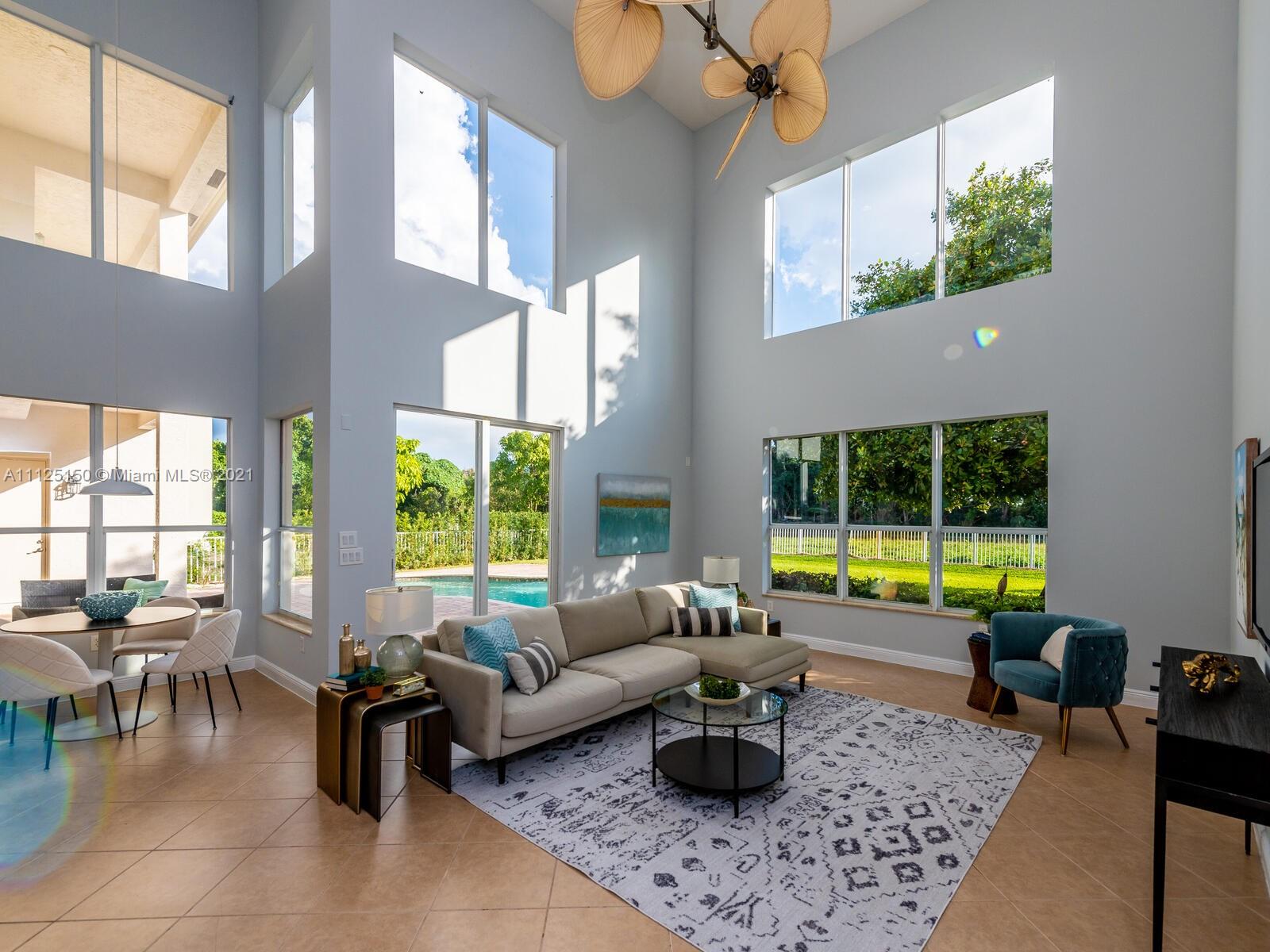 Elegant estate brimming with 3,488 sqft of luxurious interiors in the coveted community of Sunset Lakes offering stunning water views all around you, and resort style amenities. Upon entering, you will find a stately office with rich built-in shelving, and a soaring open living room with floor to ceiling windows and views of the private backyard. A gourmet kitchen opens seamlessly to the great room with 2-story ceilings and a cozy sun filled breakfast nook all which makes for the perfect setting to host large gatherings with sprawling granite countertops, stainless steel appliances including a double wall oven, breakfast bar that comfortably seats 4 and much more. Enjoy all the luxuries of spending time on the large paver patio that surrounds a crystal blue in-ground pool.