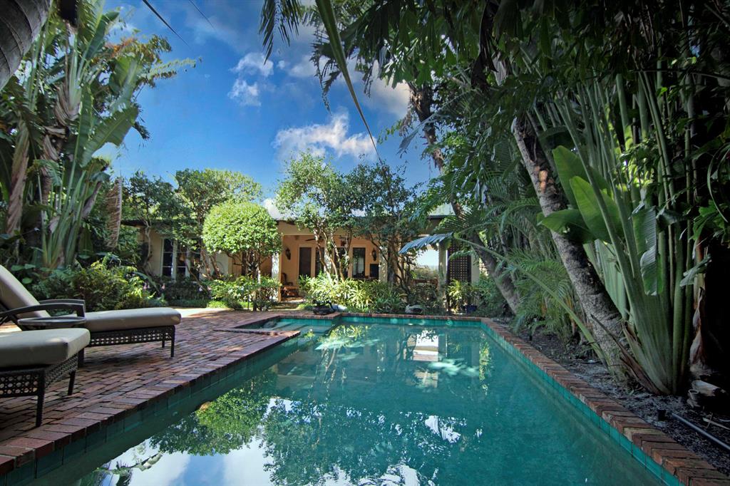 Located in the heart of West Palm's prestigious El Cid, this lake block property is truly an Oasis. The main house provides 2 bedrooms and 2 baths and a beautiful gourmet chef's kitchen with a Viking gas range. The spacious living and family rooms both showcase through French doors, the wonderful covered outdoor living and fabulous 'resort style' pool setting bordered by amazing mature landscaping and one of the nicest two story guest houses in all of El Cid! The guest house has 2 bedrooms, 1 bath and a 1 car garage. All the windows and doors are impact rated.