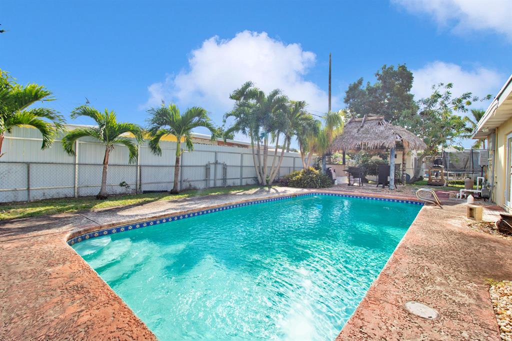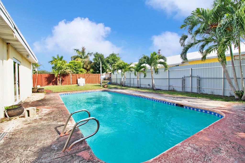 West Palm Beach living at its finest. This 4 bedroom 2 Bath Bahama Heights home has new impact windows, new flooring through out living area, dining area, kitchen and master bedroom. Completely renovated master bathroom. Newly renovated kitchen with stainless steel appliances, new cabinets and built in eat in peninsula with plenty of built in storage space. New high hat lights recently installed. Newly installed plantation shutters. New vanity installed in guest bath. Circular driveway with room for 6+cars. Huge lot with plenty of space on the side of the house to park a trailer or keep your boat/wave runners. Perfect backyard to entertain with in-ground pool and tiki hut/tiki bar.