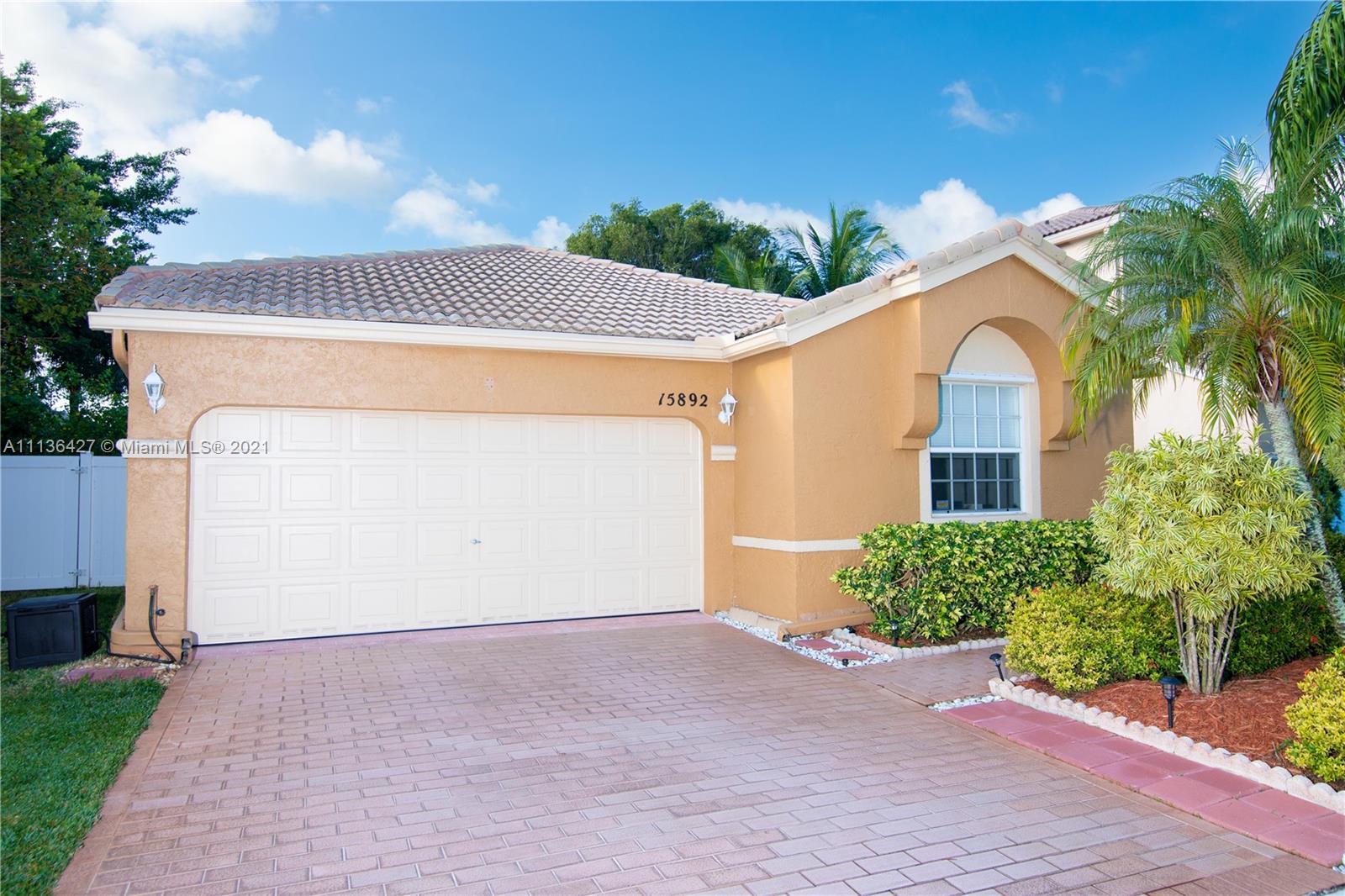 ONLY A HANDFUL OF ONE STORY HOMES LEFT IN TOWNGATE! Live in one of the most sought after communities in West Pembroke Pines, Towngate! Highly desired model with 3 bedrooms, 2 full baths and a 2-car garage. You will find it easy to call this house a home from the minute you walk in! Warm earth tone colors throughout, along with vaulted ceilings in the kitchen, dining room, living room and master bedroom. Easy to keep this home clean due to all tile floors throughout. Walking distance to lake, clubhouse gym, clubhouse pool, subdivision pool, park, baseball field, soccer field, basketball court, tennis court and playground! Zoned for great schools, one of which is walking distance away! Feel safe living here in this gated community which has 24 hour security guards patrolling the premises.