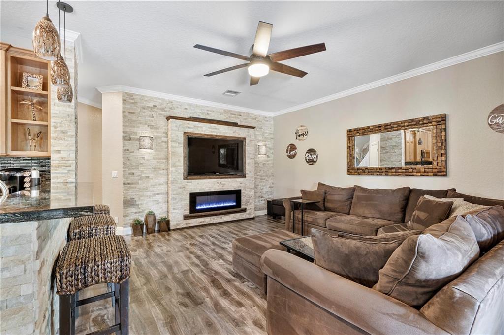 TRULY TURNKEY 5/3 WATERFRONT HOME IN DESIREABLE GATED NEIGHBORHOOD OF WYNDHAM LAKES. THIS HOME IS SUBSTANTIALLY UPDATED WITH NEW LAMINATE FLOORING THROUGHOUT, UPSCALE FRESHLY RENOVATED BATHROOMS, MODERN EAT-IN KITCHEN OVERLOOKING WATER VIEWS W/ GRANITE & STAINLESS, COZY LIVING ROOM W/ MARBLE STONE WALL & FIREPLACE, BRAND NEW CUSTOM INTERIOR DOORS, NEW PAINT & MOLDING THROUGHOUT. HOME BOASTS AN OVERSIZED MASTER BEDROOM & BATHROOM SUITE COMPLETE W/ A MASSIVE WALK-IN CLOSET. 5TH BEDROOM DOWNSTAIRS W/ FRENCH DOORS CAN BE USED AS AN OFFICE/PLAYROOM. OUTSIDE, ENJOY EVENING SUNSETS OVER THE WATER FROM BENEATH THE EXPANSIVE COVERED PATIO OR WHILE RELAXING IN THE FIREPIT AREA. KIDS & PETS HAVE TONS OF ROOM TO PLAY IN THE FULLY FENCED BACKYARD. GREAT FISHING & BOATING WITH THE KIDS IN YOUR BACKYARD!