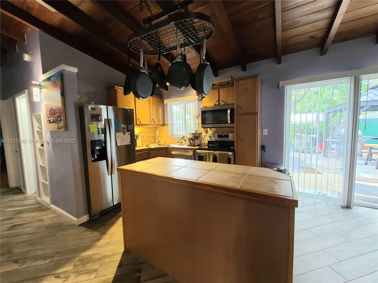 Great starter home or vacation rental, AirBnB! Quaint 3/2 with open beam vaulted ceilings. Large fenced yard complete w/above ground pool (partially under ground), gazebo, shed, fire pit to enjoy. New impact windows & doors. Both bathrooms have been remodeled. House features solar panels installed in 2021. Kitchen features stainless steel appliances. Plenty of parking including a new metal carport awning. Ideal location just mins from Ft Lauderdale beach & downtown, I95, 595, Turnpike. New floors in living/dining/kitchen/hall/bathrooms. 1 bedroom has terrazzo, 2 have carpet panels over terrazzo. Dimensional shingle roof was done in 2014. City water/sewer. New mini split a/c in main living area. Call to see & make this yours! (Tax roll sq footage is slightly smaller than actual footage)