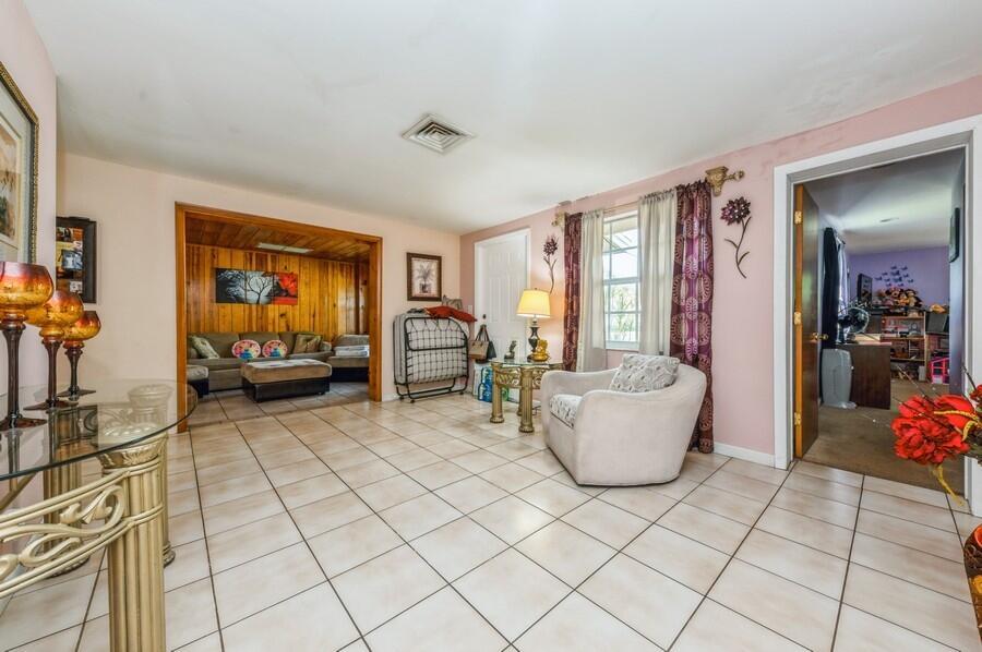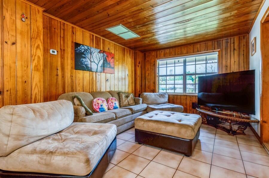 Spacious 3 bedroom/ 2 bath Florida Ranch with 2 car carport on almost 1/4 acre! This single family, CBS built home features granite counter tops, tile in main areas & carpet in bedrooms. Additionally features gorgeous, solid pine walls in family and dining areas, large Master bedroom with en-suite master bathroom & double closets. Shed in back AND utility laundry room with workshop! Complete aluminum shutters for windows. Plenty of space to add on and park your toys if desired. No HOA. Excellent schools and short car ride to PBI airport and beaches. Please do not disturb tenants.