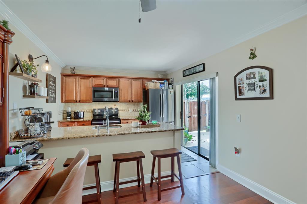 Don't miss the opportunity to own this two-story home featuring ample outdoor space along with 2 bedrooms and 2.5 bathrooms. Updated finishes throughout including Samsung appliances, laminate and tile flooring on the main level, and newly installed carpeting upstairs. This townhome has two balconies and a large fenced in patio making this an entertainer's dream and the perfect place to enjoy the outdoors. Located in convenient proximity to I-95, without having to hear any noise. This is a full amenity complex with a pool and tennis courts.