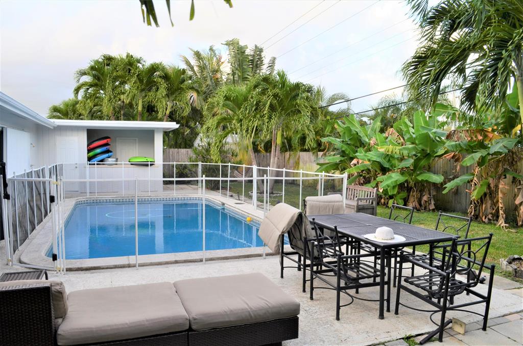 This wonderful home is in a much sought-after neighborhood in East Boca Raton. Kitchen has been updated and features espresso colored wood cabinets, stainless steel appliances and concrete countertops. Impact windows throughout. Both bathrooms have been remodeled. The spacious living room provides lots of natural light and features a built-in wet bar and wine cooler. Backyard is completely fenced in providing the necessary privacy to sit and relax by the private pool. Half bath and shower are located outside in the patio area. Third bedroom is an enclosed sunroom. This home is a 5 minute drive from some of the best restaurants and shops in downtown Boca. Walking distance to A rated schools. About 2 miles away from the beach. This home will not disappoint. Come see it for yourself!