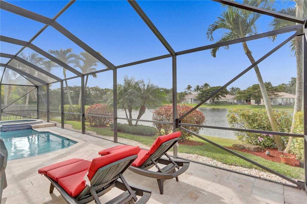 Immaculately maintained 4 Bedroom, 2.5 Bath lakefront pool home located in Camellia Island. This home has it all! Heated pool & Jacuzzi jacuzzi, newer roof, impact glass & doors with accordion shutters, recently remodeled kitchen and flooring throughout, updated bathrooms and California closets. Perfectly located on the lake. Enjoy beautiful sunsets from your patio! A+ schools and close proximity to Town Center.