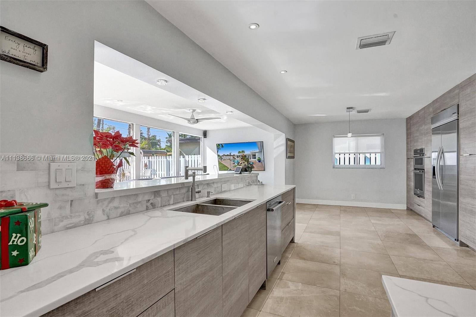 Florida Living at its BEST in East Hollywood Lakes. You're getting ALL the extras with this home conveniently located. Completely updated & remodeled. This 3 bed, 3 bath, 2 car garage with the circular driveway (at least 6 cars) is fully Hurricane proof. all the Interior doors have been replaced with Paneled Doors. Marble Flooring through out the entire home. You'll Love the way the expansive open floor plan joins the kitchen, Living Room and Great Room all together. The master bedroom is huge 22 X18' WoW! Plus it has a working office set up in it's own area. The outside Bricked Pool area is large enough for any size get together. Access to the back of the house via the Alley and the sliding gate at the back fence. There is a free standing shed in the back for all those extras.