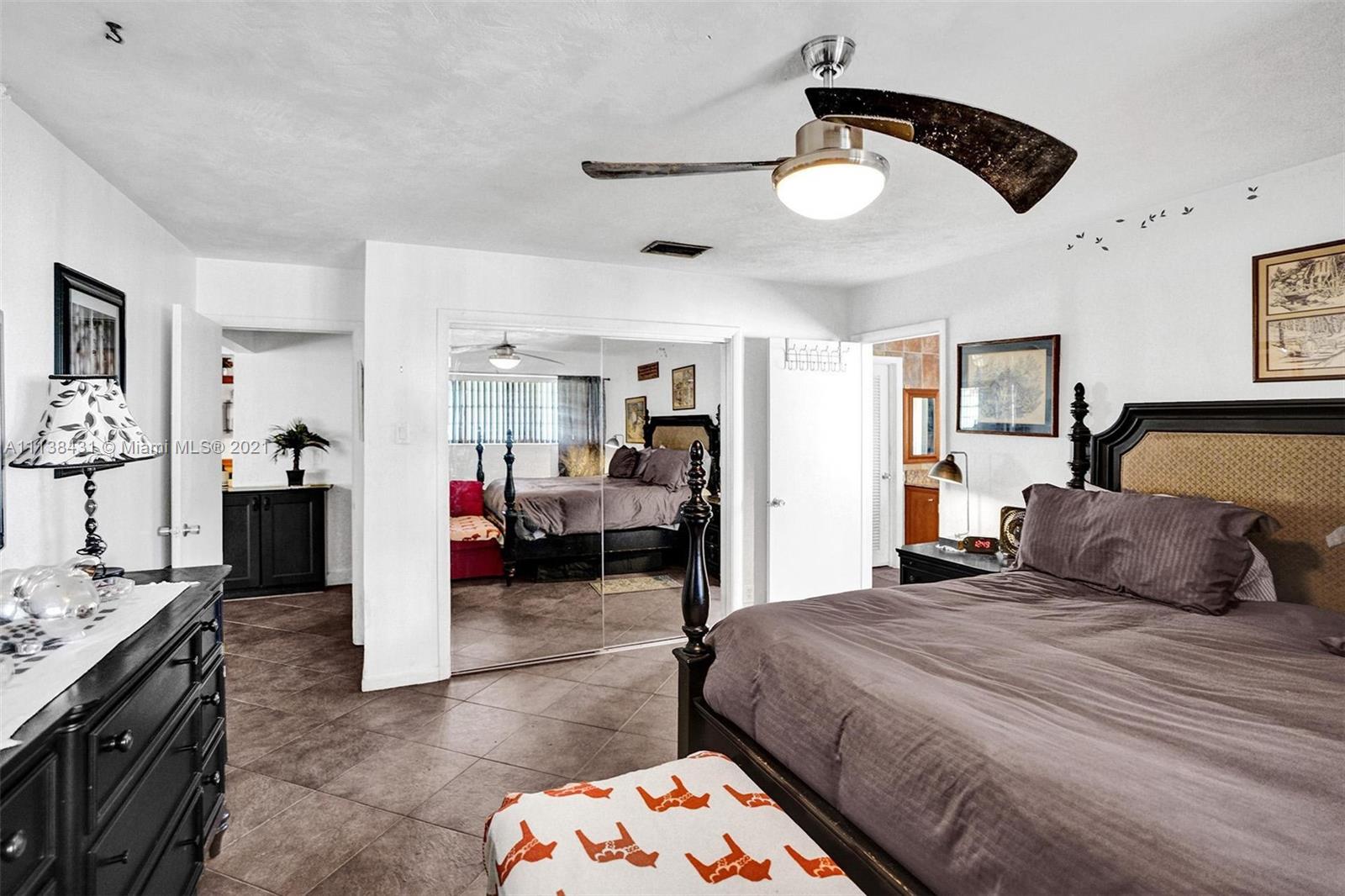 Welcome into the front living area; it attaches to the dining area with crown molding and tile flooring throughout. The unique kitchen is located around the corner, and comes with excellent upgrades including glass-front cabinets, stainless steel appliances, and exposed wood ceilings. The spacious rear living area has plenty of room to relax and unwind, and features access to the pool and patio. The primary bedroom offers tile flooring, excellent light, and a fabulous ensuite bathroom. The secondary bedrooms are ideal for accommodating guests and share a common hallway bath. Out back, float lazily in the impressive backyard pool, which is surrounded by palm trees and attached to the covered patio.