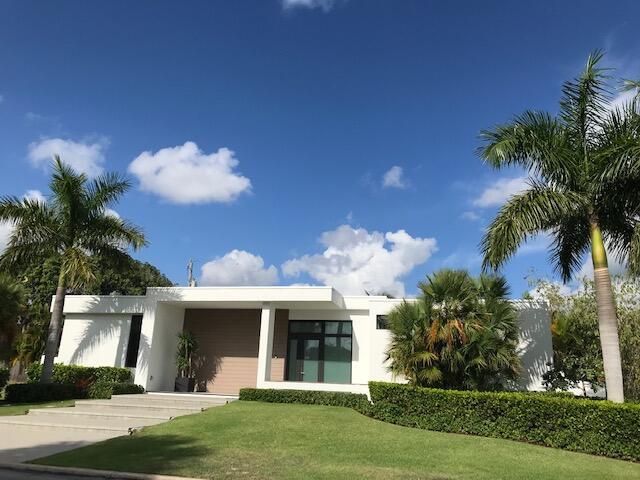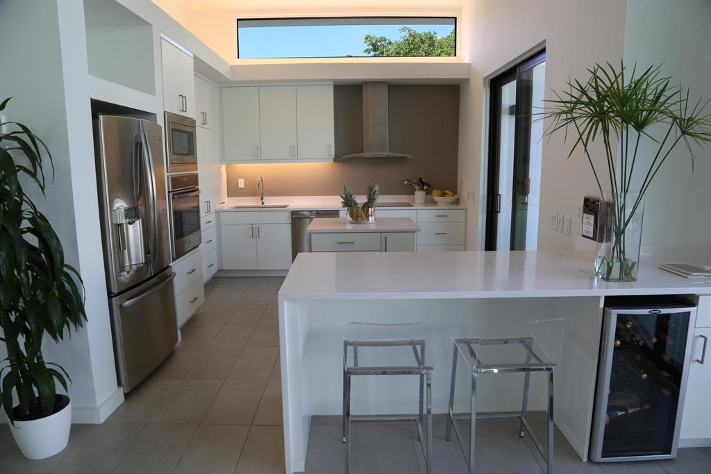 This stunning, new Mid-Century Modern Solar house is located in a trendy neighborhood one block from the inter-coastal. By employing the most innovative state of the art energy saving techniques this modular house has received the highest certification of LEED Platinum by the National Green Builders Association. Solidly built from steel, concrete and impact glass this house meets the highest hurricane standards. The tall ceilings and glass walls open to dramatic views of the pool in back Great flow for entertaining, lots of windows, winner of Sustainable Florida's Award for Best Practice in Green Building, side yard