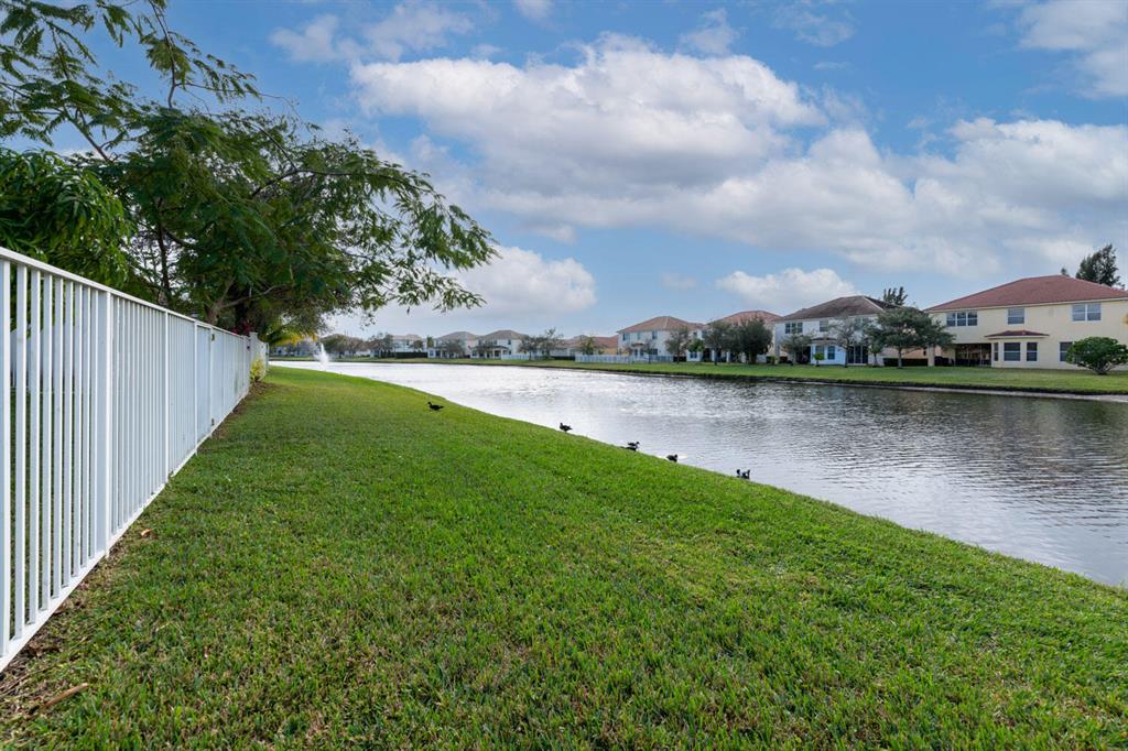Welcome to your very own tranquil paradise in the Mulberry Grove neighborhood within the beautiful Palm Beach Plantation gated community with ample activities. Also located in a sought after school district, the home boasts over 2500 sq. ft. that include four bedrooms with a large master, oversized guest rooms and 2.5 bathrooms. A large lanai and framed water view of the lake & nightly colored-lit fountain make this home a great fit for the indoor outdoor lifestyle. Multiple upgrades and improvements include oversized fenced yard with ample room for a pool,A/C air handlers and condensers, tankless water heater, 2nd story accordion shutters, upgraded electrical panel with plug in generator option, whole home gutter expansion, high quality carpet upstairs with extra thick under-padding.