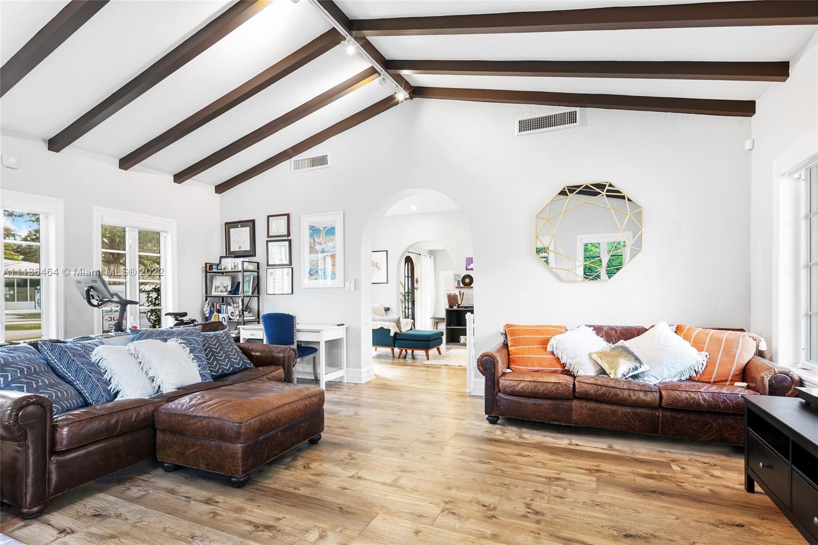This 1925 Historic Mediterranean style home features 4 bedrooms and 2.5 bathrooms in the main house and 1 bedroom & 1 bathroom in the detached guest house. The entire estate has been fully renovated including new master bathroom, full impact windows & doors, new flooring, new roof, 3 new AC units, Thermador kitchen appliances, brand new pool heater & salt chlorinator w/ child protection pool fence, new covered pergola w/ electricity (full list attached). Attached is a full-sized 2 car garage with additional room for storage. The property features an oversized fully fenced-in lot showcasing a backyard with a pool, spa, and a pergola covering a porch perfect for entertainment while providing a side yard that is a great play area for the entire family. 3D Matterport: shorturl.at/iFKT4.