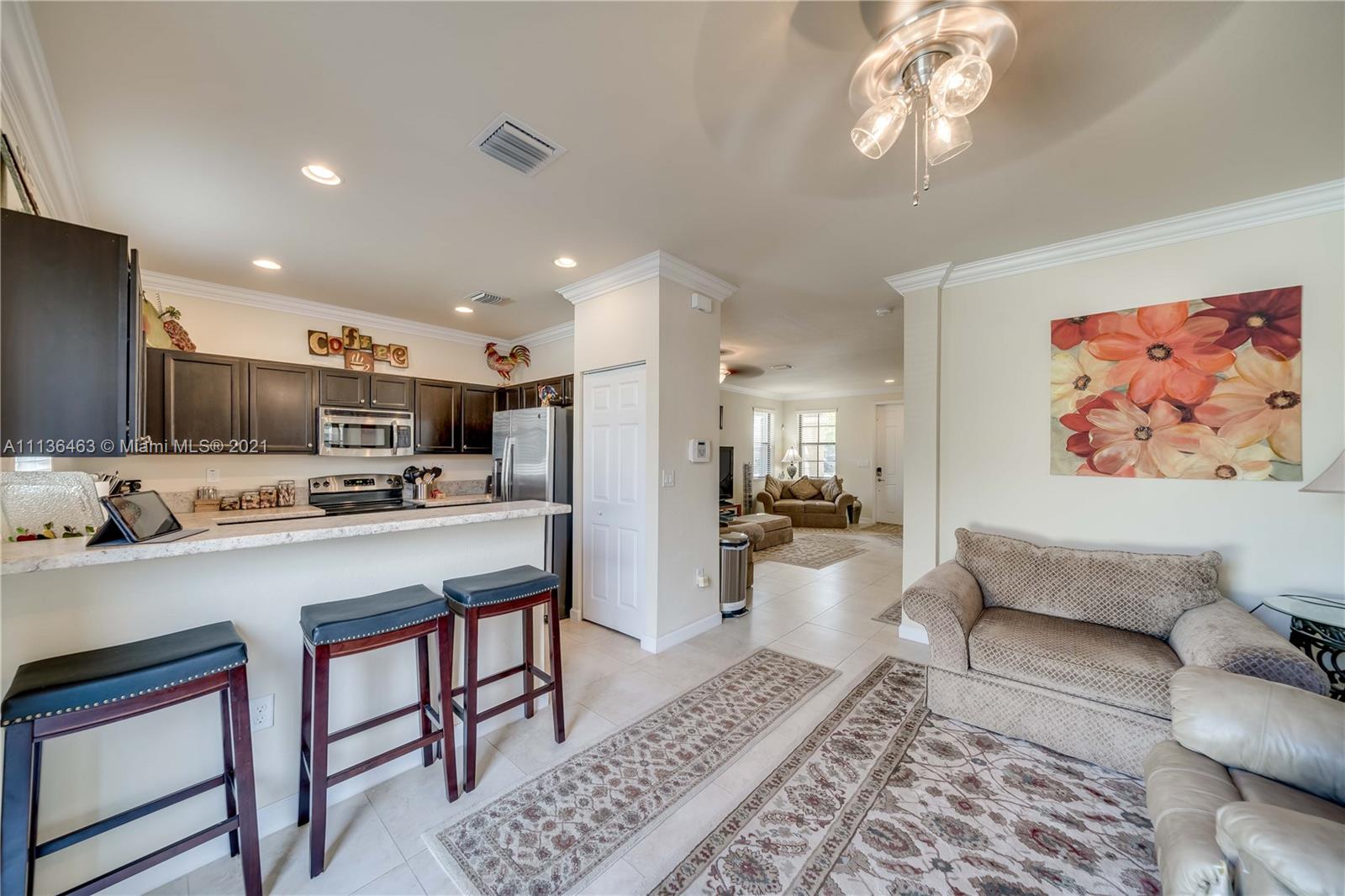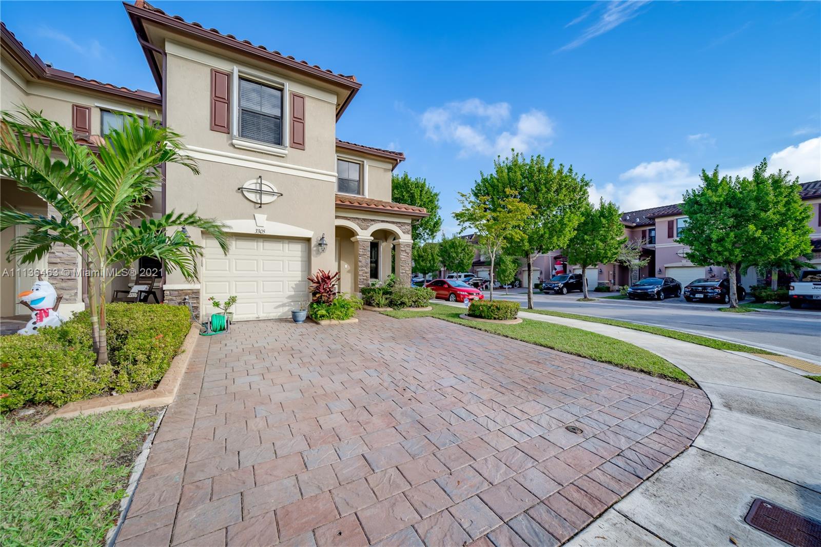 3 Bed 2 and 1/2 Bath 2 Story Corner Unit Townhouse with 1 Car Garage INTERIOR FEATURES: 18 Inch Tile throughout the Lower Level•6' Inch Baseboards and Crown Molding Up and Down•Fresh Neutral Interior Paint•Nice Big Front Room full of Windows•Separate Family Room•36' Dark Pine Cabinets•Stainless Steel Appliances•High Hat Lights•Snack Bar overlooks Family Room•Pedistal Sink in Half Bath•Raised Panel Interior Doors•Fully Carpeted Upstairs•2nd Floor Laundry•2 Walk In Closets•Large Bedrooms•Upgraded Shower Tile n 2nd bath•Master with Tray Ceiling & Double Crown•Dual Sinks in Master•Master Shower with Glass Doors EXTERIOR FEATURES: Complete Set Accordion Shutters•Fenced Backyard•2 Car Wide Large Paver Driveway•Covered Front Entry•Concrete Landscaping Boards•Nearby Guest Parking•Gated Community